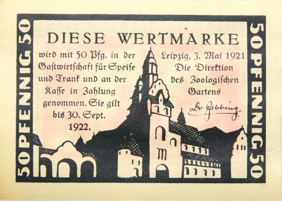 Лейпцигский зоопарк - БАНКНОТА 50 Пфеннигов 1921 СЛОН Штат UNC