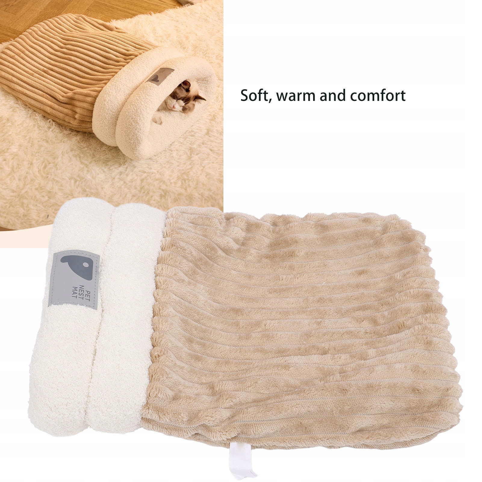 4. Пещерный дизайн: спальный мешок-мешок с отверстием посередине не только добавит веселья во время игр вашего питомца, но и стимулирует его исследовательские инстинкты, что делает его больше, чем просто кровать для сна.