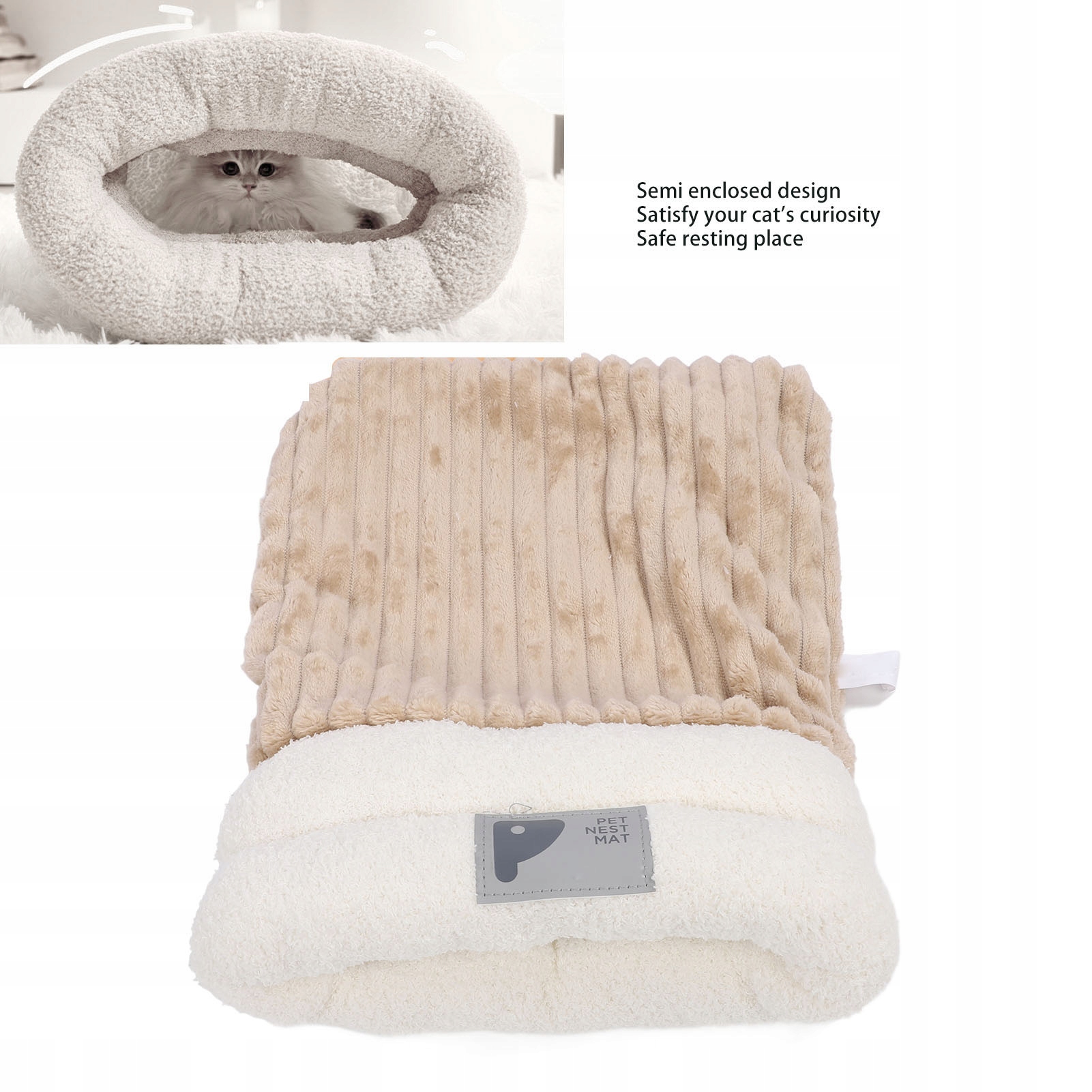 3. Полузакрытый дизайн: полузакрытый дизайн пещерной кровати повышает чувство безопасности, предлагая вашему питомцу безопасное и снижающее стресс пространство для отдыха и обеспечивая лучшее качество сна.