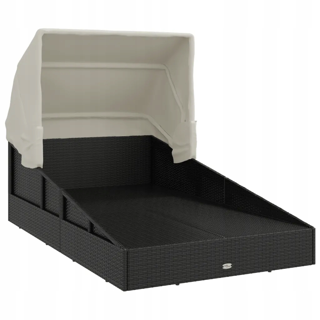 Лежак садовий з дахом, чорний, ПЕ ротанг, сталь, 200х114х128 см, поду