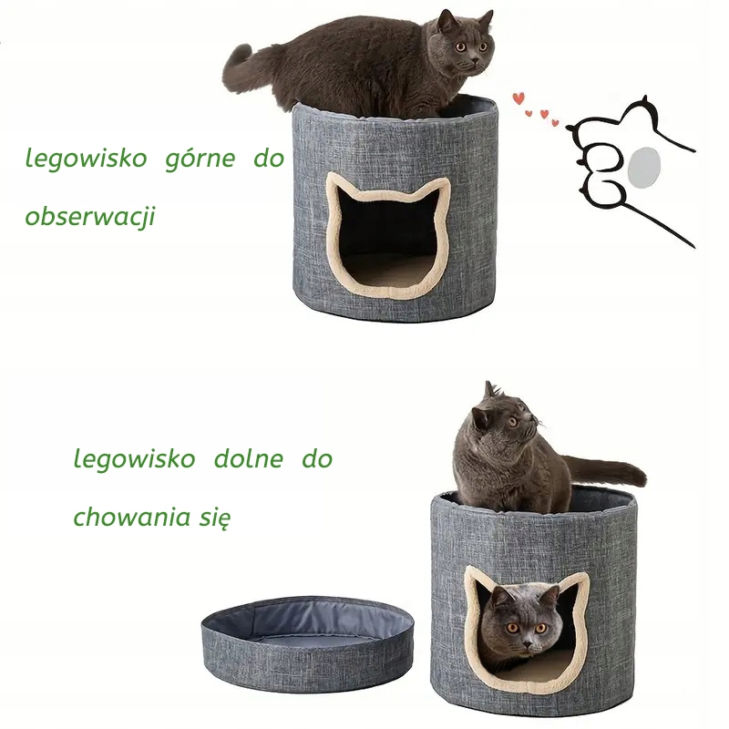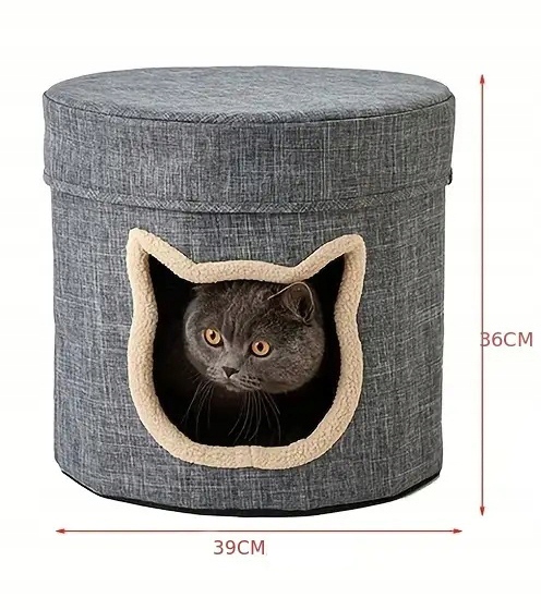 Уход: домик изготовлен из прочного, долговечного материала, безопасного для кошек. Внутри капюшона и верхней кровати находятся две съемные подушки.