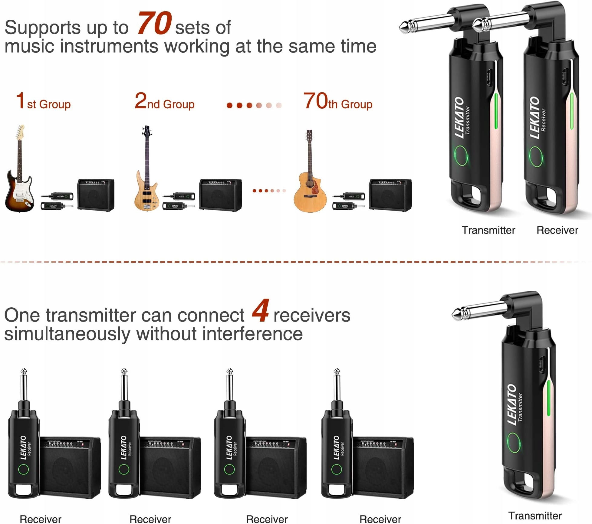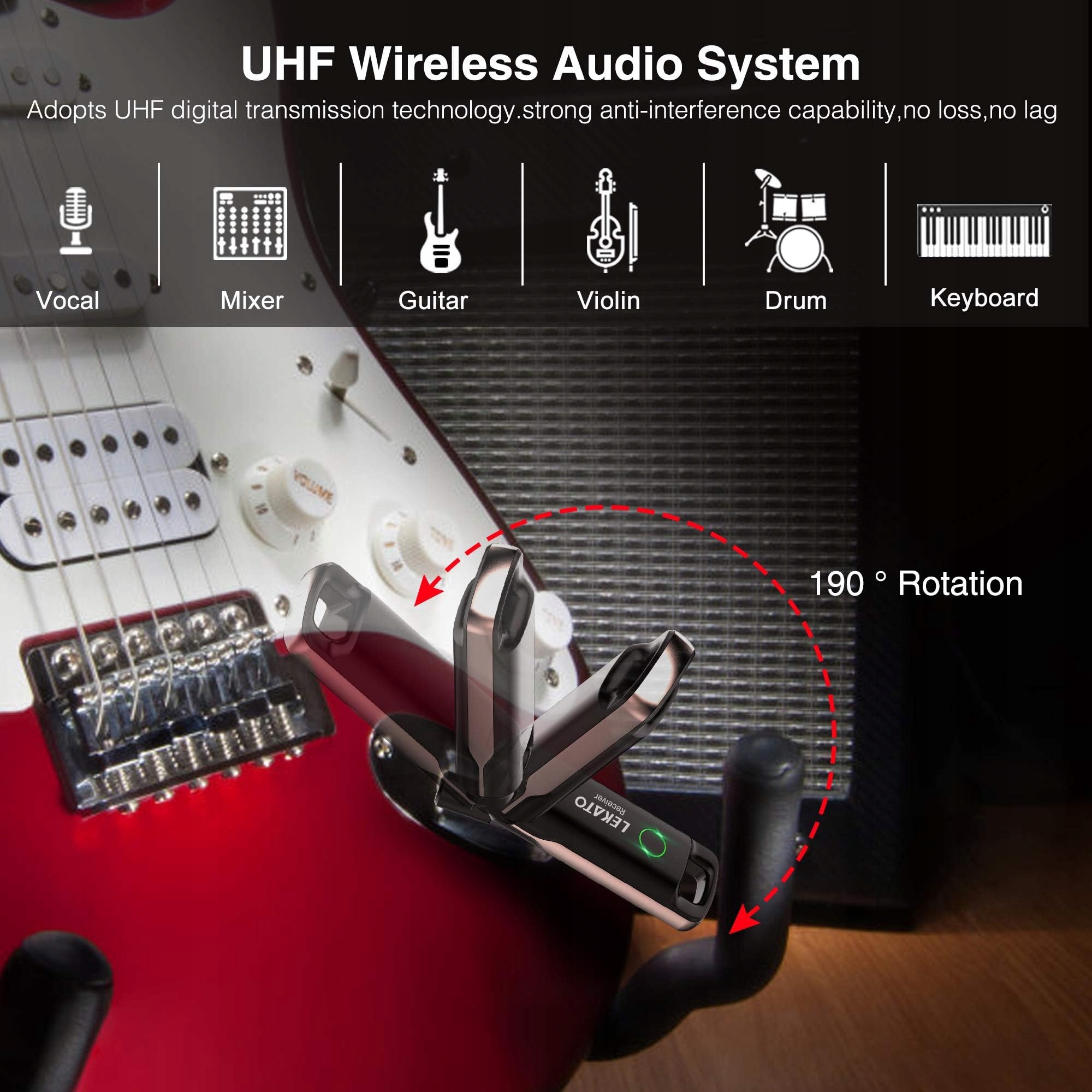 Беспроводная гитарная система LEKATO WS-70, 70 каналов, 3 мс, WS70-Gelb