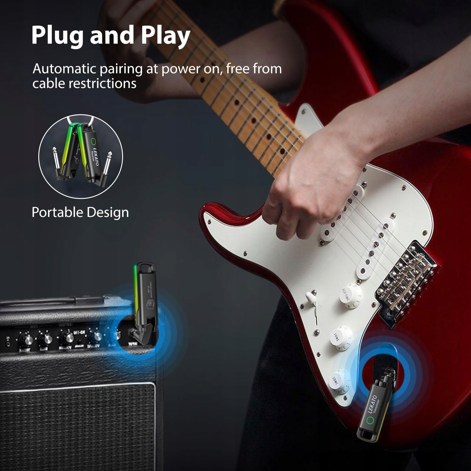 Забудьте о сложных настройках! Система LEKATO WS-70 работает в режиме Plug & Play. Просто нажмите и удерживайте кнопку сигнала на передатчике и приемнике, и устройства автоматически соединятся. Профессиональная беспроводная система для электрогитар и бас-гитар обеспечивает беспрецедентную свободу передвижения без спутывания кабелей, а время отклика менее 3 мс позволяет получить чистый и качественный звук вашей гитары без каких-либо задержек.
