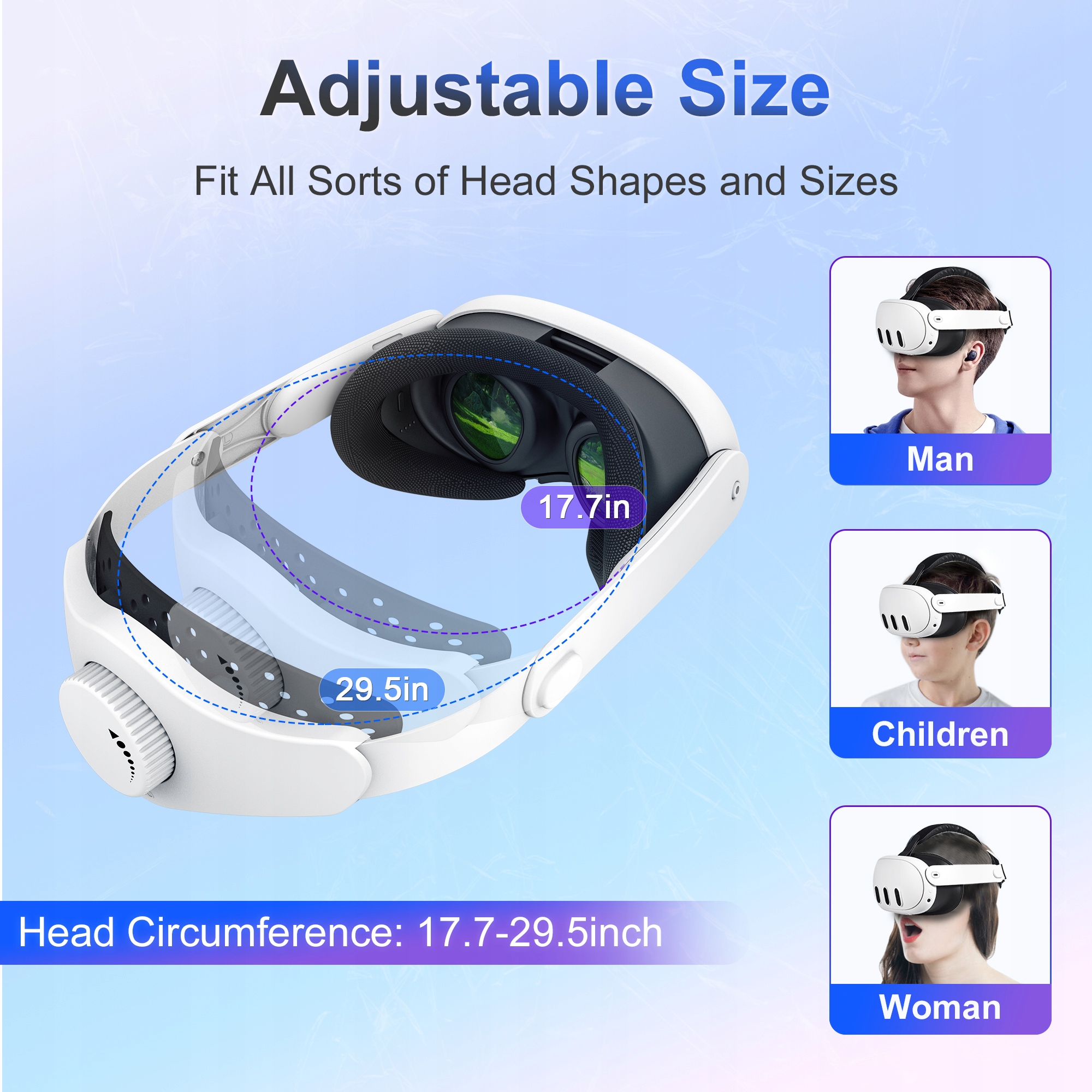 Простая регулировка: Размер ремешка Quest 3 Elite можно установить с помощью точного циферблата, легкодоступный размер, ремешок на устройстве, обозначающий размер головы 17,7–29,5 дюймов. Шарнир на 360° позволяет легко поднимать и снимать гарнитуру, не снимая ремень, для просмотра сверху.