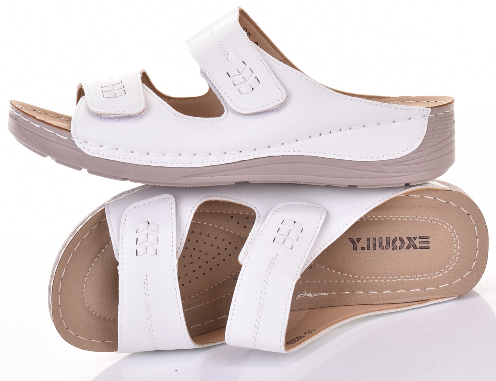 LEKKIE KLAPKI SKÓRZANE DAMSKIE SZYTE SOLIDNE NA RZEPY DOPASOWANE PRZEWIEWNE