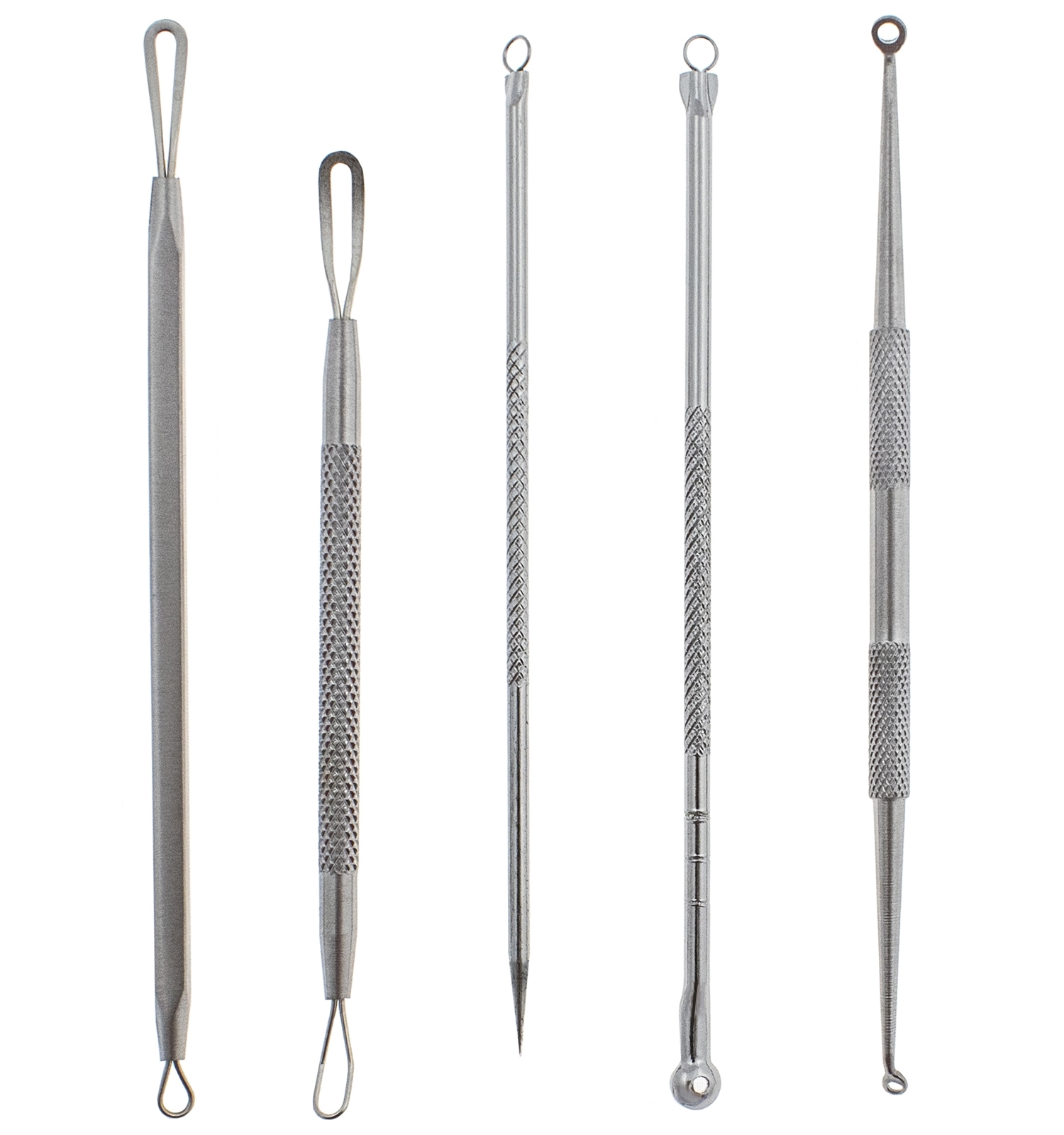 Профессиональный набор из 5 двусторонних ложечек Унна, в котором большие кончики помогают удалять прыщи, а белые кончики помогают удалять прыщи, а меньшие - черные точки!
