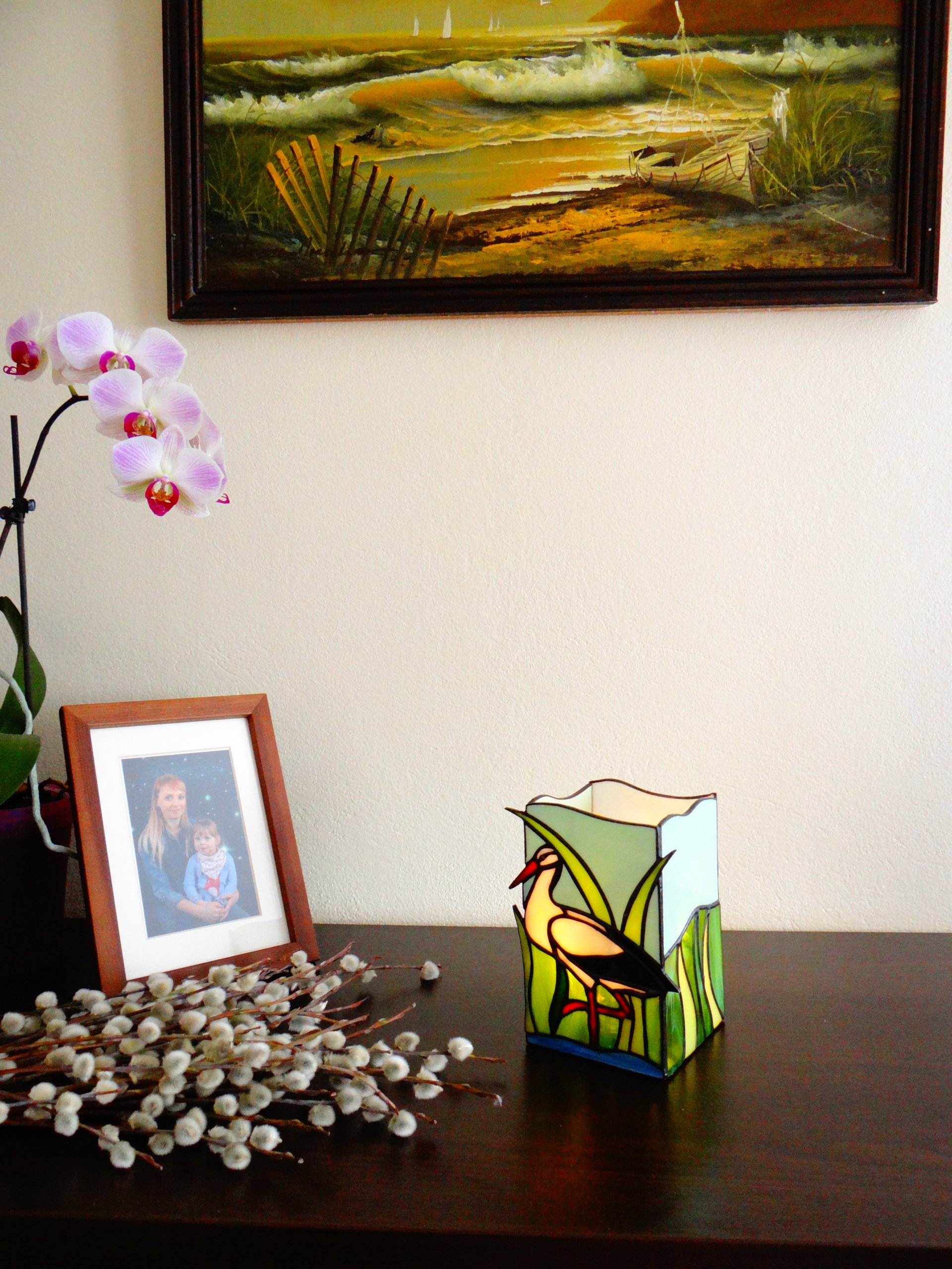 Аист - витражный фонарь
