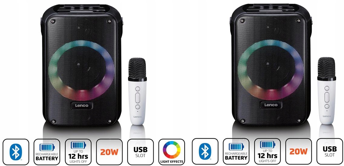 LENCO BTC-060 AUX Bluetooth-динамик USB КАРАОКЕ со светодиодной батареей БЕСПРОВОДНОЙ МИКРОФОН