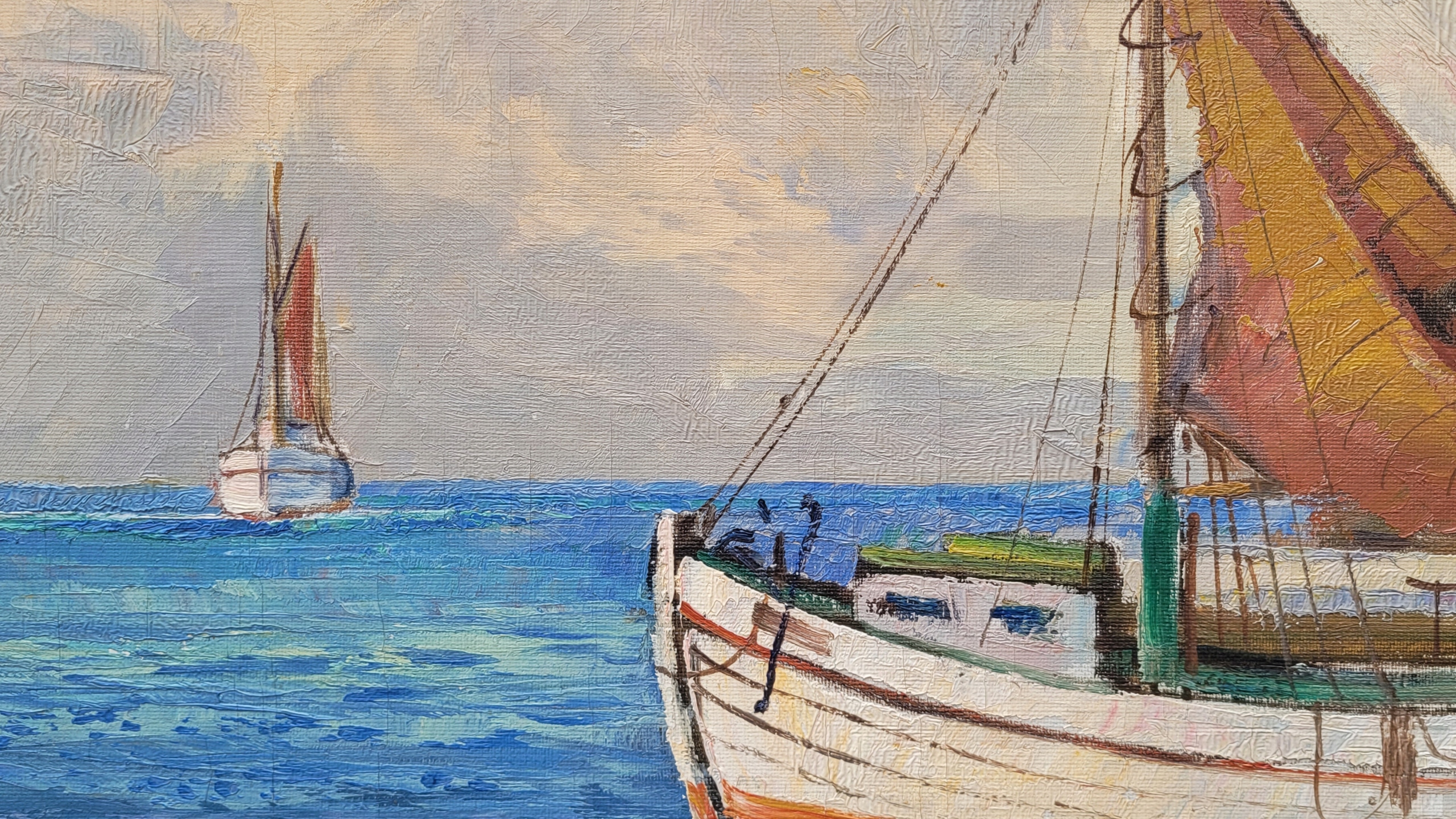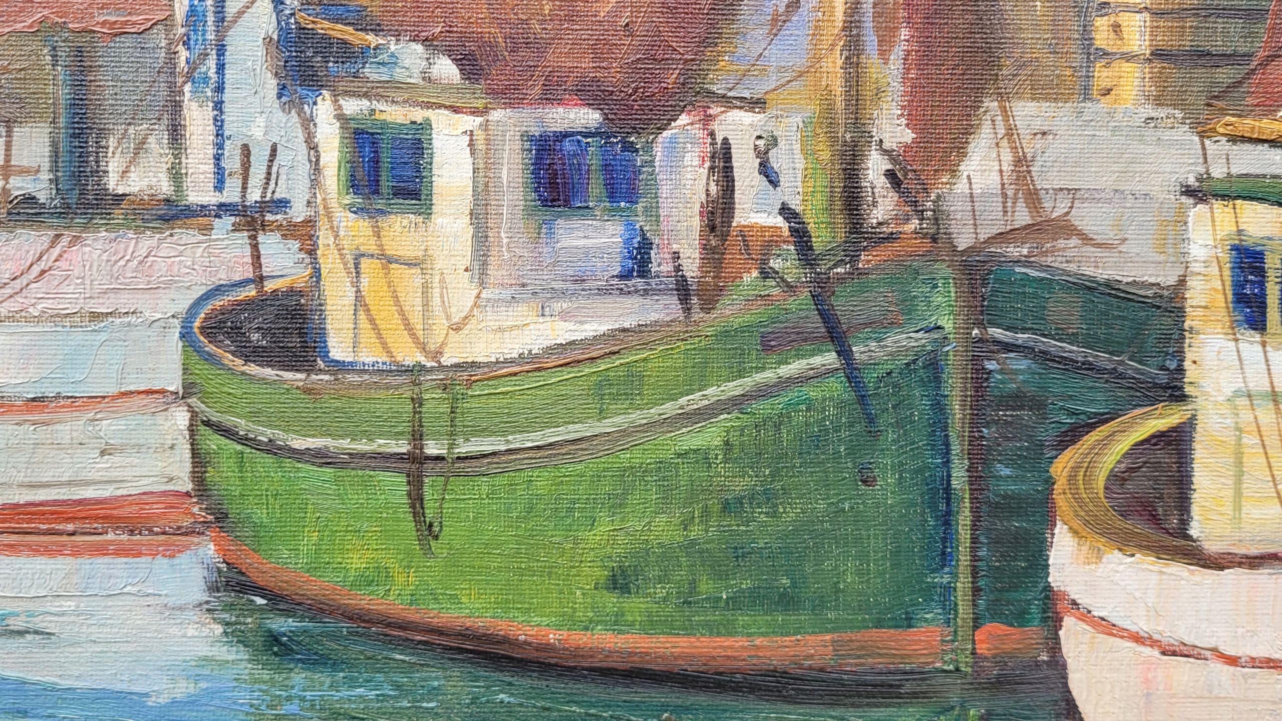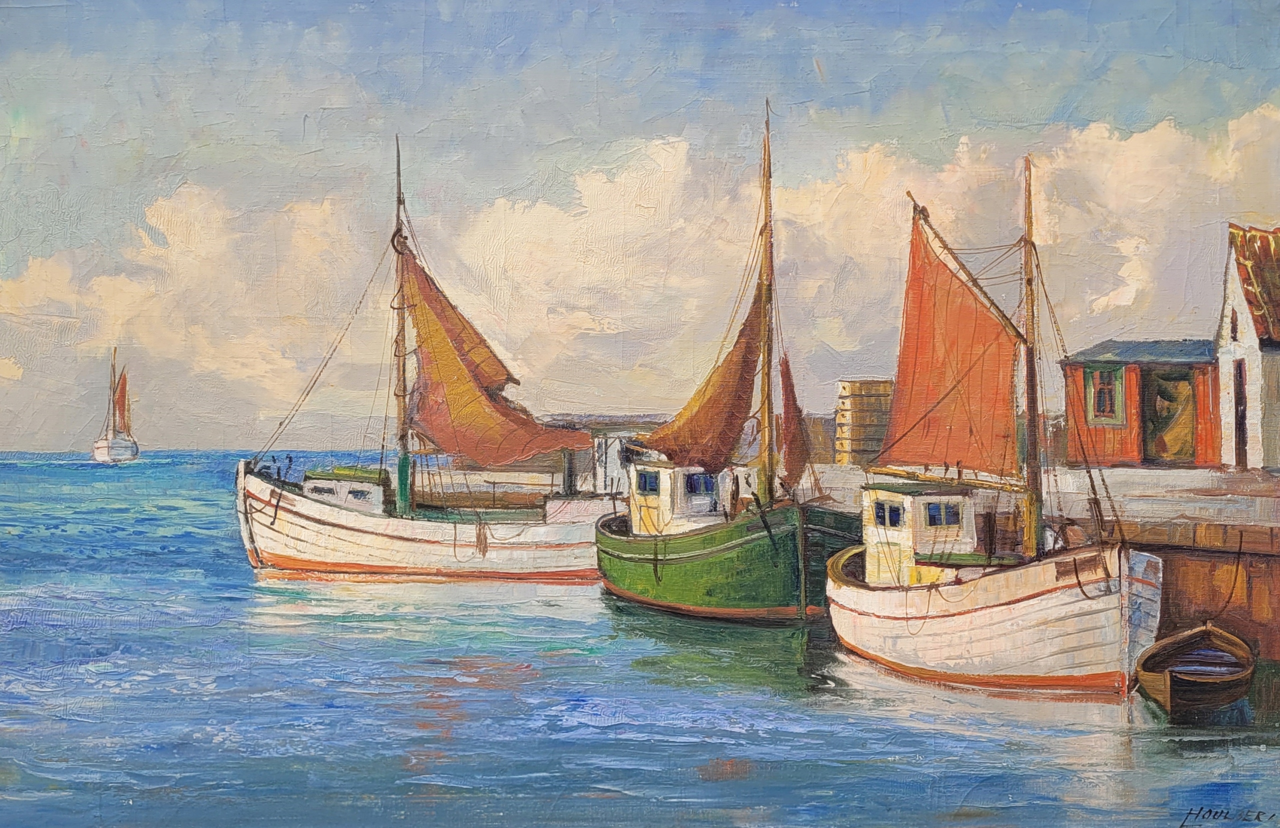 Тема продажи - красивая старая нефтяная картина "рыболовные лодки". Восстание - после 1945 года (возможно, старше).