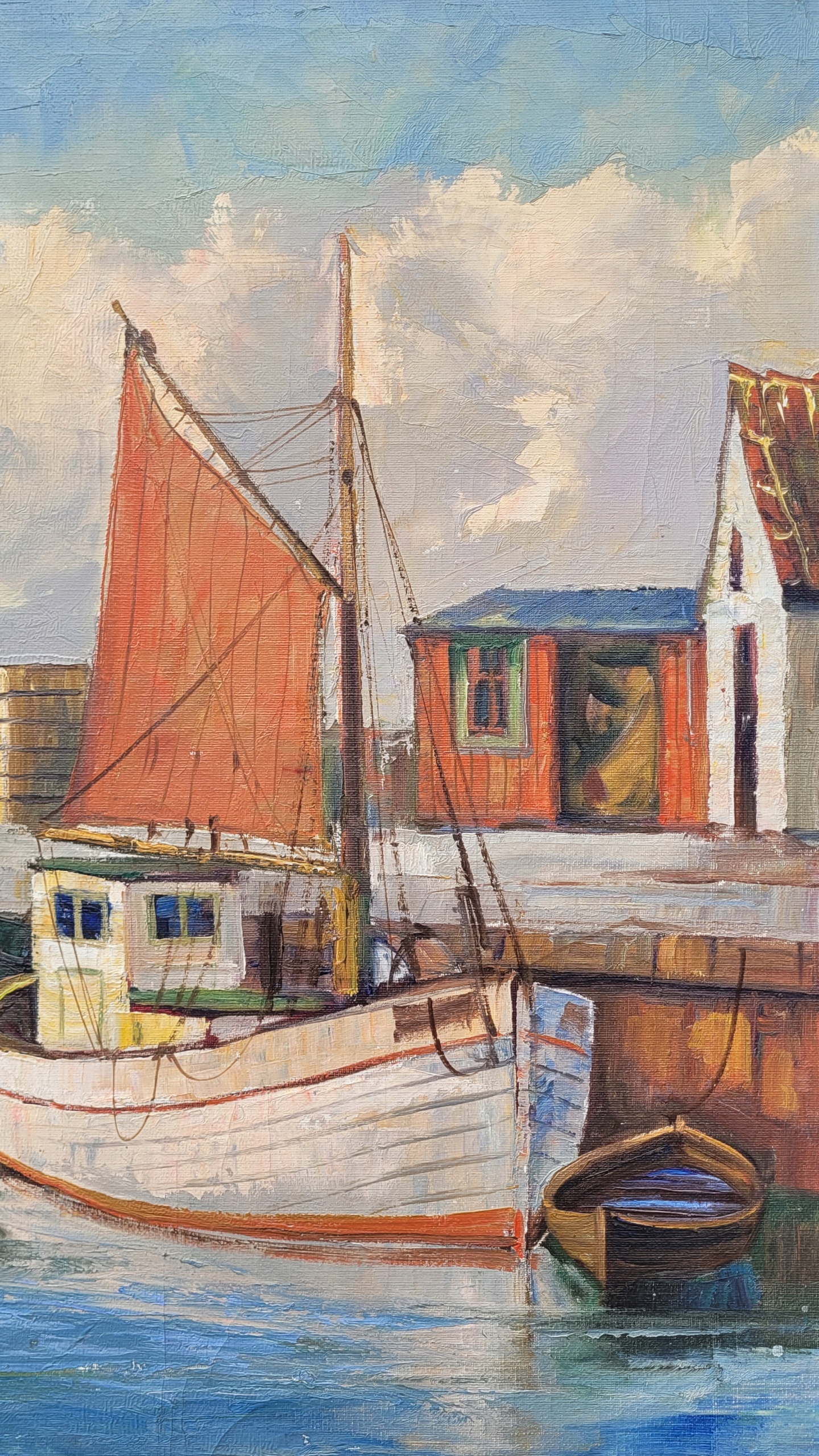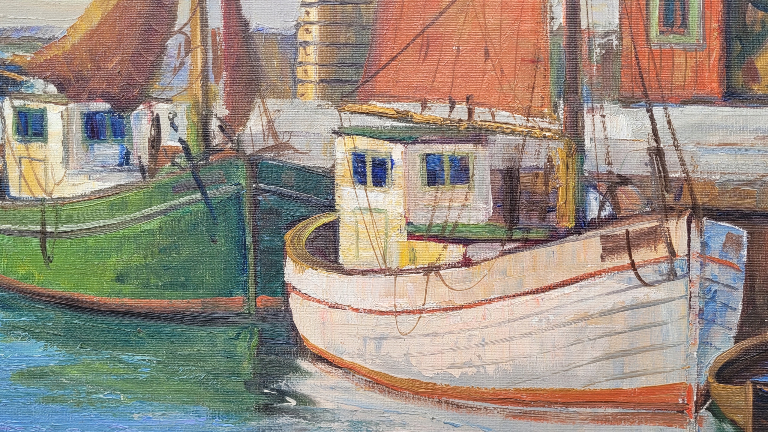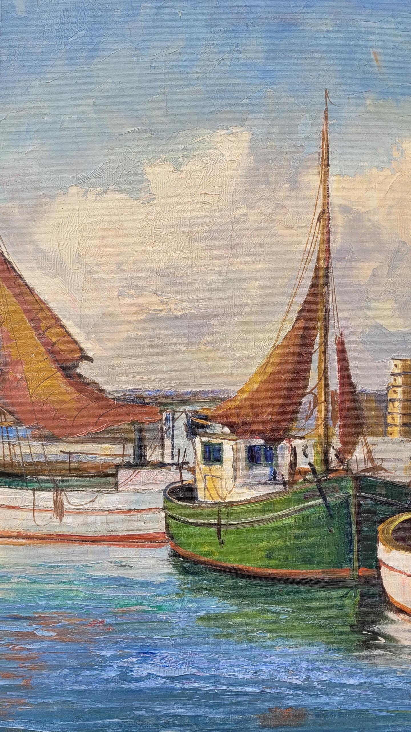 Тема продажи - красивая старая нефтяная картина "рыболовные лодки". Восстание - после 1945 года (возможно, старше).
