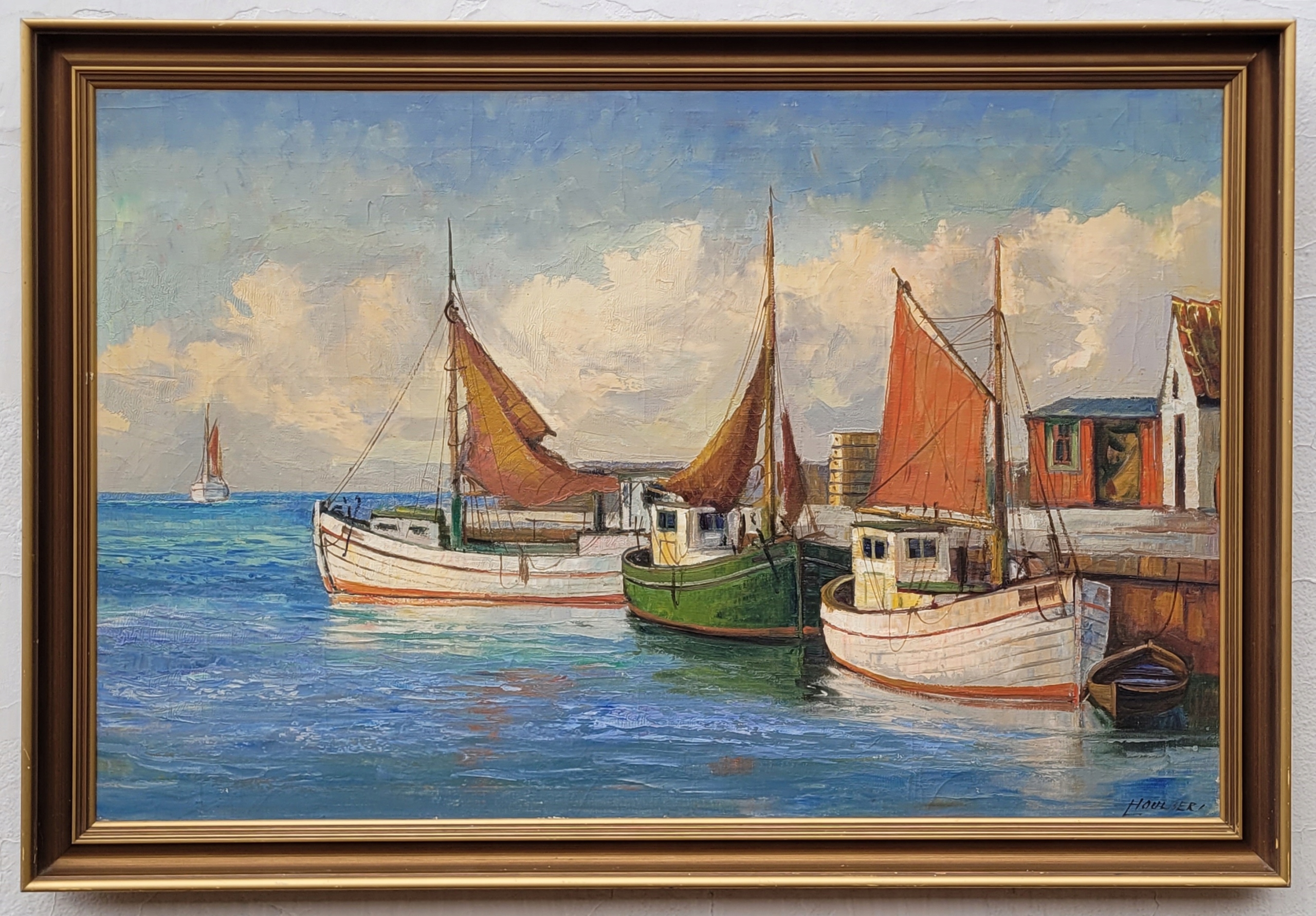 Лео Хоулберг (1896-) - «Рыболовство кутри», старая масляная картина.