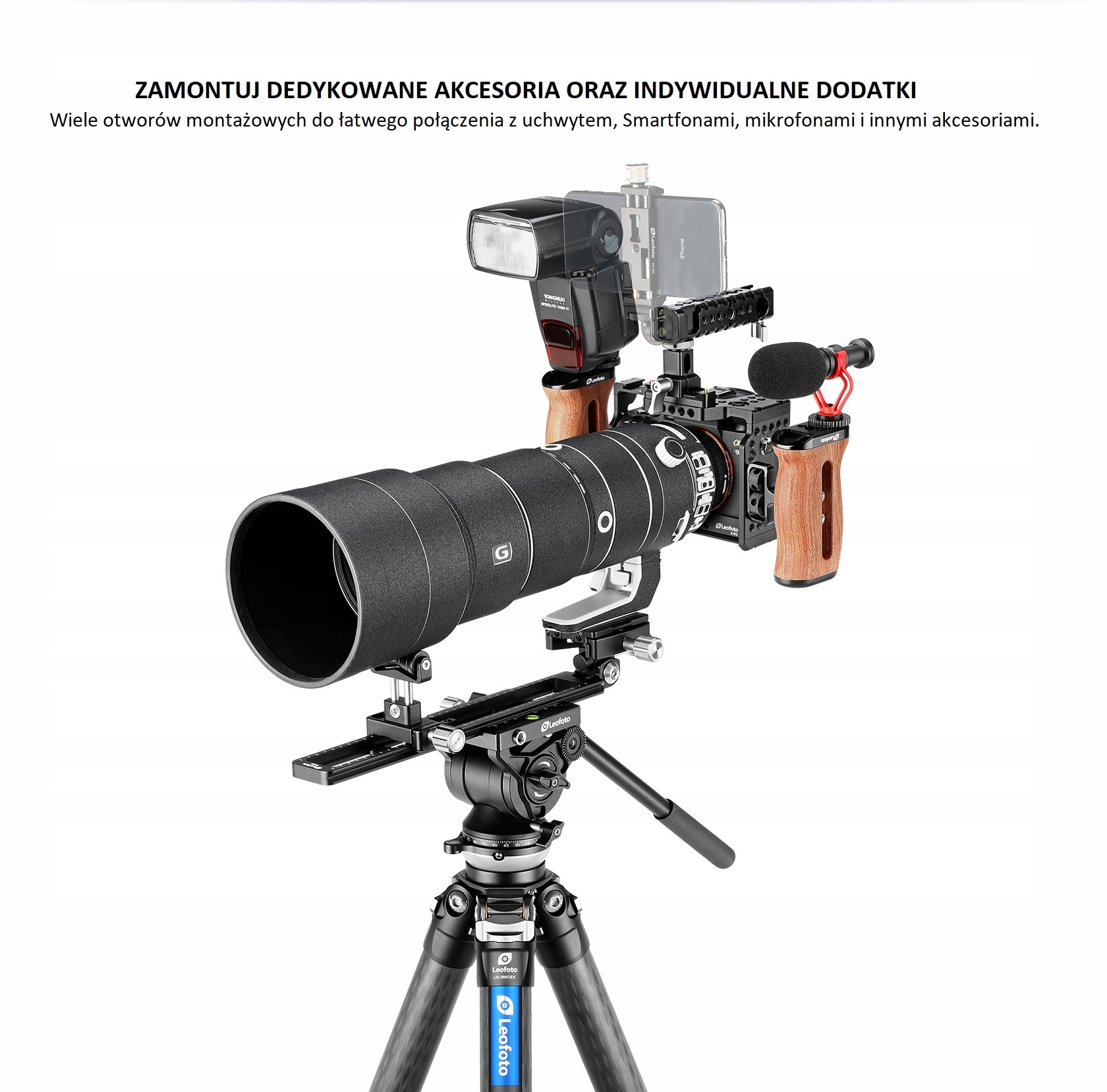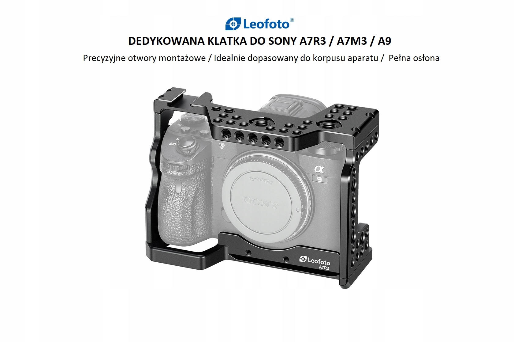 Leofoto A7R3, A7M3, A9 -это высококачественная клетка, предназначенная для аппарата Sony Монтажные точки для микрофона, дополнительное освещение и другие аксессуары, полезные для работы оператора