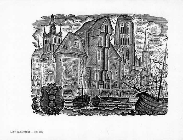 Леон Космульський: Гданськ, композиція дереворит 1949