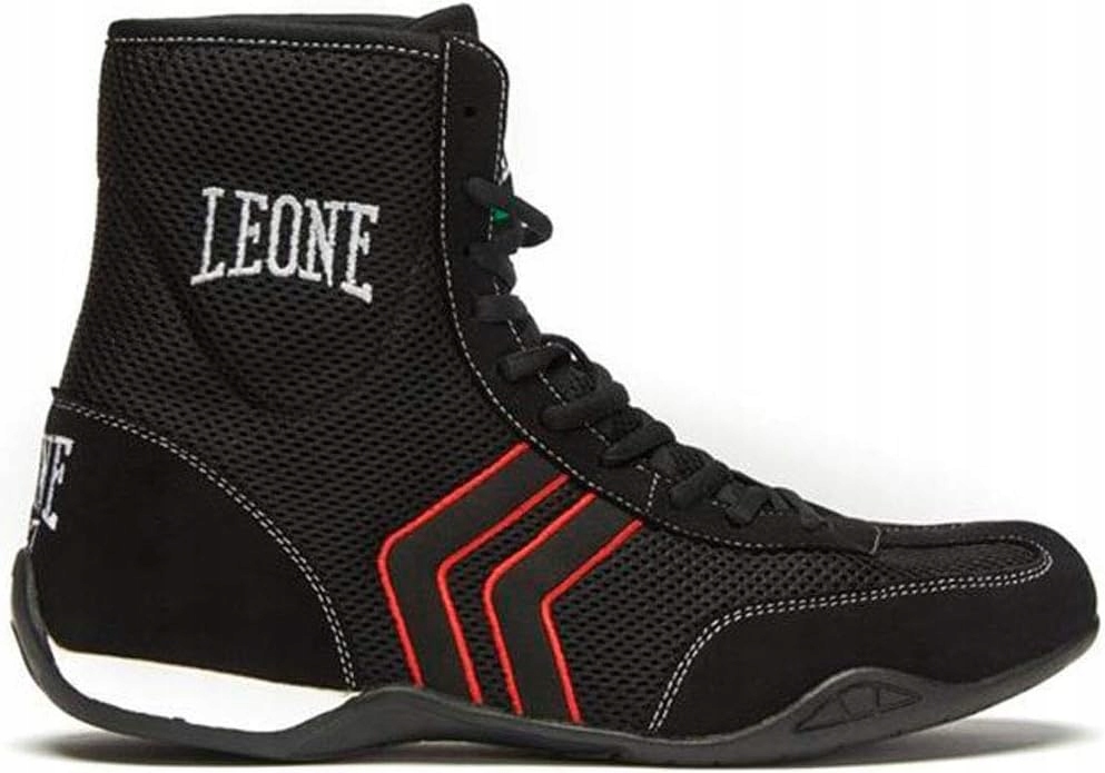 легкая и дышащая боксерская обувь, сделанная из перфорированной гипоаллергенной сетки PU, которая облегчает теплообмен и предотвращает чрезмерное потоотделение. Двойное заполнение вокруг лодыжек и укрепление твердой каблуки предотвращает скручивание во время боковых движений. Обувь оснащена эргономичной резиновой подошвой, амортизирующей вставкой EVA под каблуком и системой шнуровки с девятью направляющими, обеспечивающими максимальную посадку к ноге и лодыжке. Стильные двойные полосы по бокам относятся к классической кожаной модели исторической обуви «Льва».