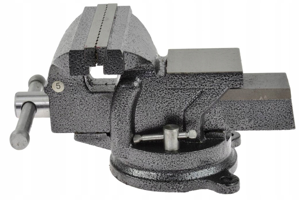 Вращающиеся слесарные тиски, изготовленные из высококачественных материалов. Губки тисков стальные с противоскользящими поперечными насечками, дополнительно закалены. Прочная и прочная конструкция позволяет надежно закрепить выбранный предмет в тисках и гарантирует долгий срок службы.