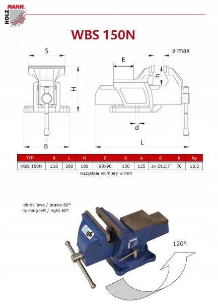 - Тиски Holzmann WBS150N предназначены для слесарных мастерских, общемеханических и автомобильных служб.