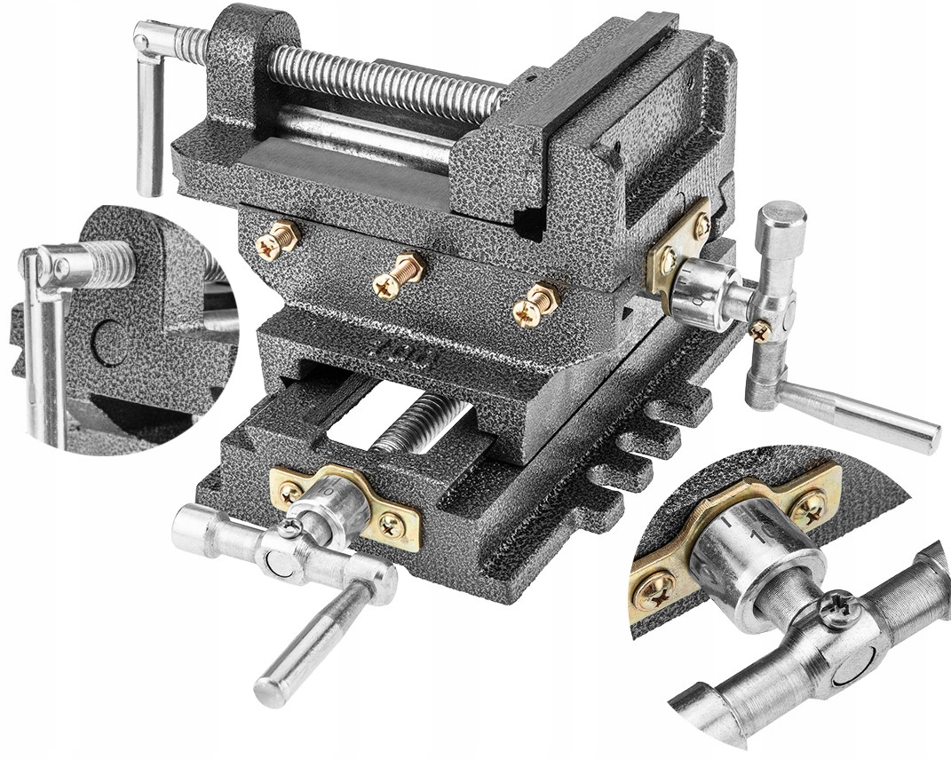 Высококачественные и чрезвычайно прочные двухосные крестовые тиски 100 мм от бренда NEO. Корпус изготовлен из прочного серого чугуна HT200, оснащен губками из закаленной стали 45# и ручкой из стали Q235. Он характеризуется чрезвычайно сильной силой зажима, обеспечивая соответствующий уровень давления и структурную стабильность.