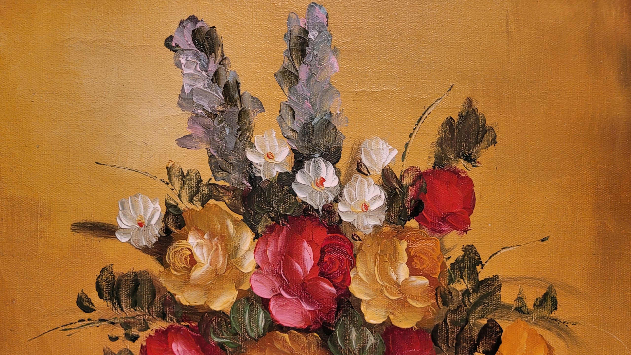 Тема продажи - красивая старая масляная картинка «цветы в вазе».
