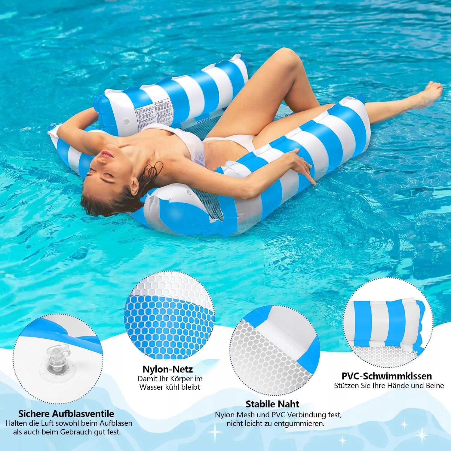 • Универсальность: Наш поплавок идеально подходит для купания в бассейне, озере и загара на пляже. Вы можете использовать его как удобную водяную кровать, удобную пляжную кровать, практичное кресло для плавания или кресло для отдыха.
