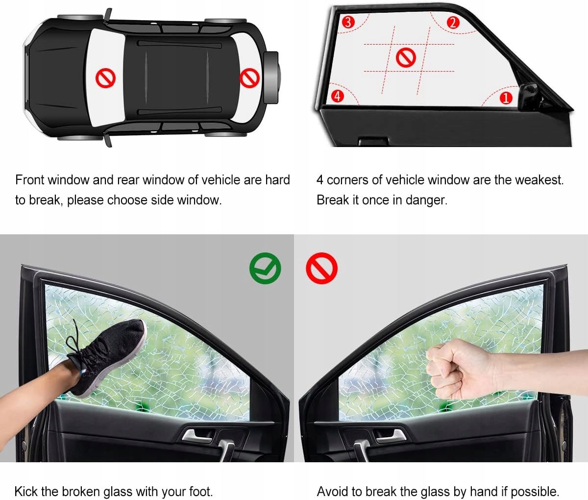 Четыре пакета: каждая покупка содержит 4 высоких качественных молочных молотков для автомобиля. Это 2 -1 -1 -спасательное устройство подходит для буфера обмена перчатки, дверного обмена или подлокотника. Поделитесь этим с семьей и друзьями, чтобы успокоиться! СОВЕТ: В случае этого применения край стекла следует сбить. Область применения доставки включает в себя рукоятку сборочной марки: фиксированная ручка, поэтому она не упадет даже в случае столкновения, но в чрезвычайной ситуации его можно легко удалить с автомобиля. Совет: крепление материала не находится в рамках доставки. Высокоэффективный резак ремней безопасности: этот двухсторонний автомобильный стеклянный молоток также оснащен скрытым лезвием, которое легко разбивает каждый ремень безопасности и убегает от ситуаций, представляющих жизнь. Аварийный молот для разрезания ремней: если дверь автомобиля не может быть открыта или вы находитесь под водой, этот автомобильный окно молоток является абсолютной необходимостью!. 2 в 1 аварийный молот с ремнем -резаком: имеет оконный молоток и резак ремня безопасности. Твердые, резкие, сдвоенные вольфрамовые кончики для быстрого прилипания окон в чрезвычайных ситуациях. Хвост имеет скрытое лезвие, чтобы разрезать ремень безопасности.