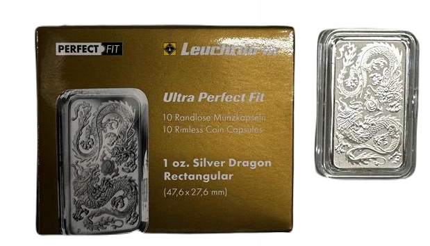 Пластиковые колпачки Ultra Perfect Fit предназначены для хранения прямоугольных золотых и серебряных монет Дракона весом 1 унция и размером 47,6 x 27,6 мм. Эти колпачки изготовлены из высококачественного материала - акрила, устойчивого к царапинам и полностью кристаллического материала, благодаря которому монета прекрасно защищена от царапин и в то же время остается полностью видимой.