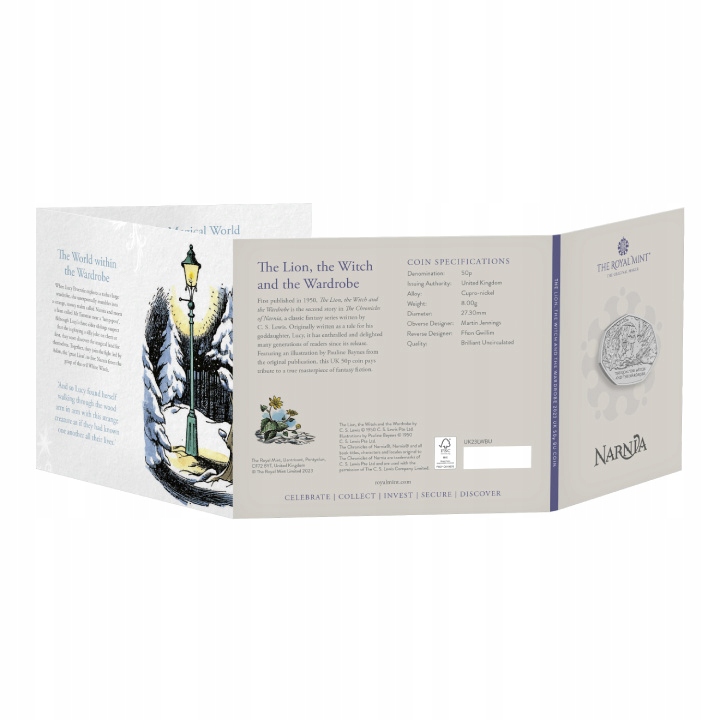 Лев, Колдунья и платяной шкаф 50р Miedzionikel 2023 — уникальный предмет, отсылающий к классической фэнтезийной серии К.С. Льюис. Роман «Лев, ведьма и платяной шкаф» рассказывает историю четырех братьев и сестер Певенси — Питера, Сьюзен, Эдмунда и Люси, которые входят в гардероб и начинают приключение в волшебной стране Нарнии.