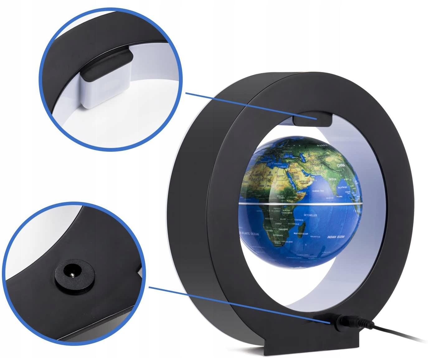 Глобус, помещенный в центр магнитного основания, создает неземное впечатление подвешенного в пространстве глобуса и развивает воображение. Сильный магнит удерживает шар в подвешенном состоянии и заставляет его вращаться. База содержит микропроцессор и электронные элементы управления, которые заставляют земной шар парить.