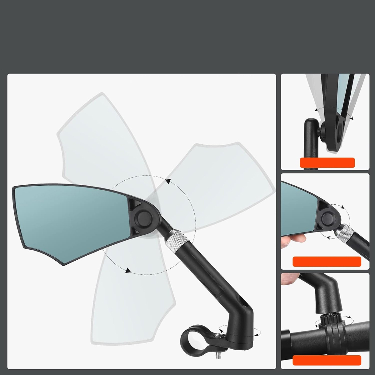 - 【Более широкое поле зрения】 Велосипедное зеркало для электрических велосипедов является незаменимым велосипедным аксессуаром. Оптимизированное и улучшенное зеркало заднего вида для велосипеда оснащено 360 -° повернутым объективом и перевернутым 60 °, регулируемым под многими углами, что позволяет устранить мертвые поля. В то же время дизайн телескопического велосипедного стержня позволяет получить бесплатное телескопическое пространство 50 мм, что позволяет проверять состояние транспортных средств, следующих за ним в режиме реального времени.