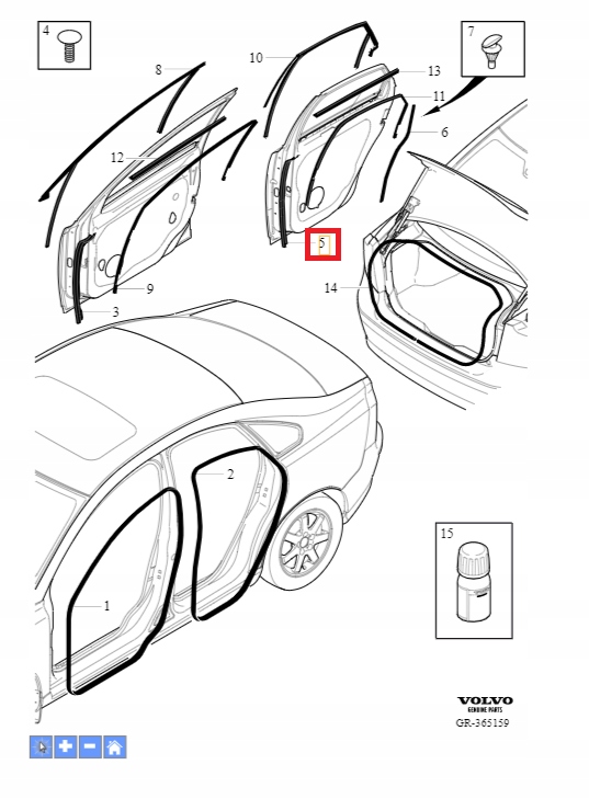 Lewy задняя дверная уплотнение Volvo S40 II V50