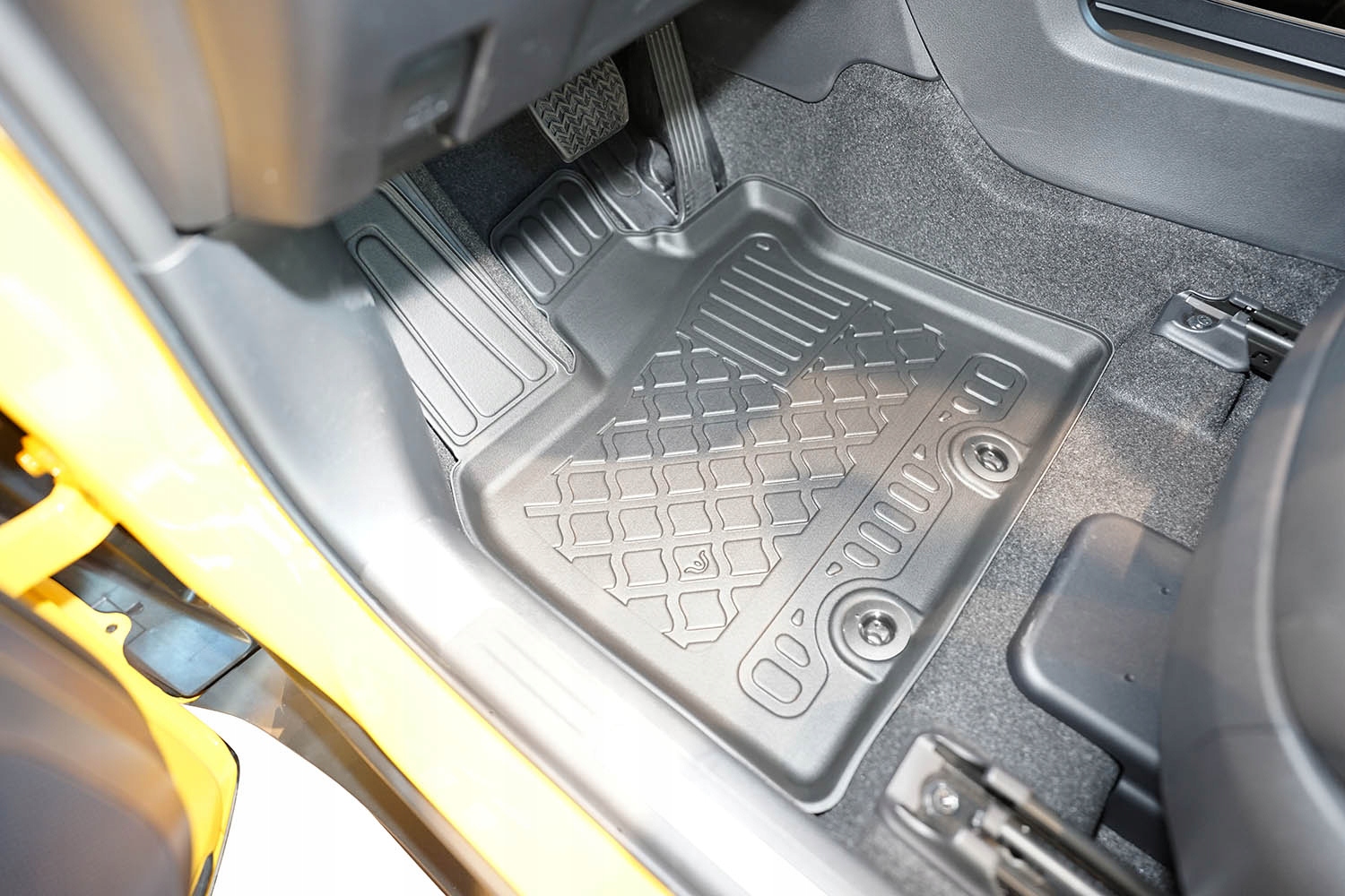 Предлагаемые коврики точно разработаны по форме напольной плиты с учетом не только марки/модели автомобиля, но также года выпуска и версии кузова, поэтому они идеально подходят. Коврики изготовлены из высококачественного, прочного и армированного пластика, не содержащего вредных для здоровья веществ, что обеспечивает безопасное использование. Высокий воротник (кромка), защищающий вокруг ковриков и обеспечивающий стабильность формы, эффективно задерживает воду и грязь, защищая оригинальную обивку автомобиля от загрязнений. Безопасно в использовании благодаря практичной и простой в использовании системе крепления к полу автомобиля. Система крепления адаптирована к марке/модели автомобиля и защищает коврик от смещения во время движения. Матовая поверхность и изысканный рисунок на поверхности обеспечивают эстетичный внешний вид автомобильных ковриков.