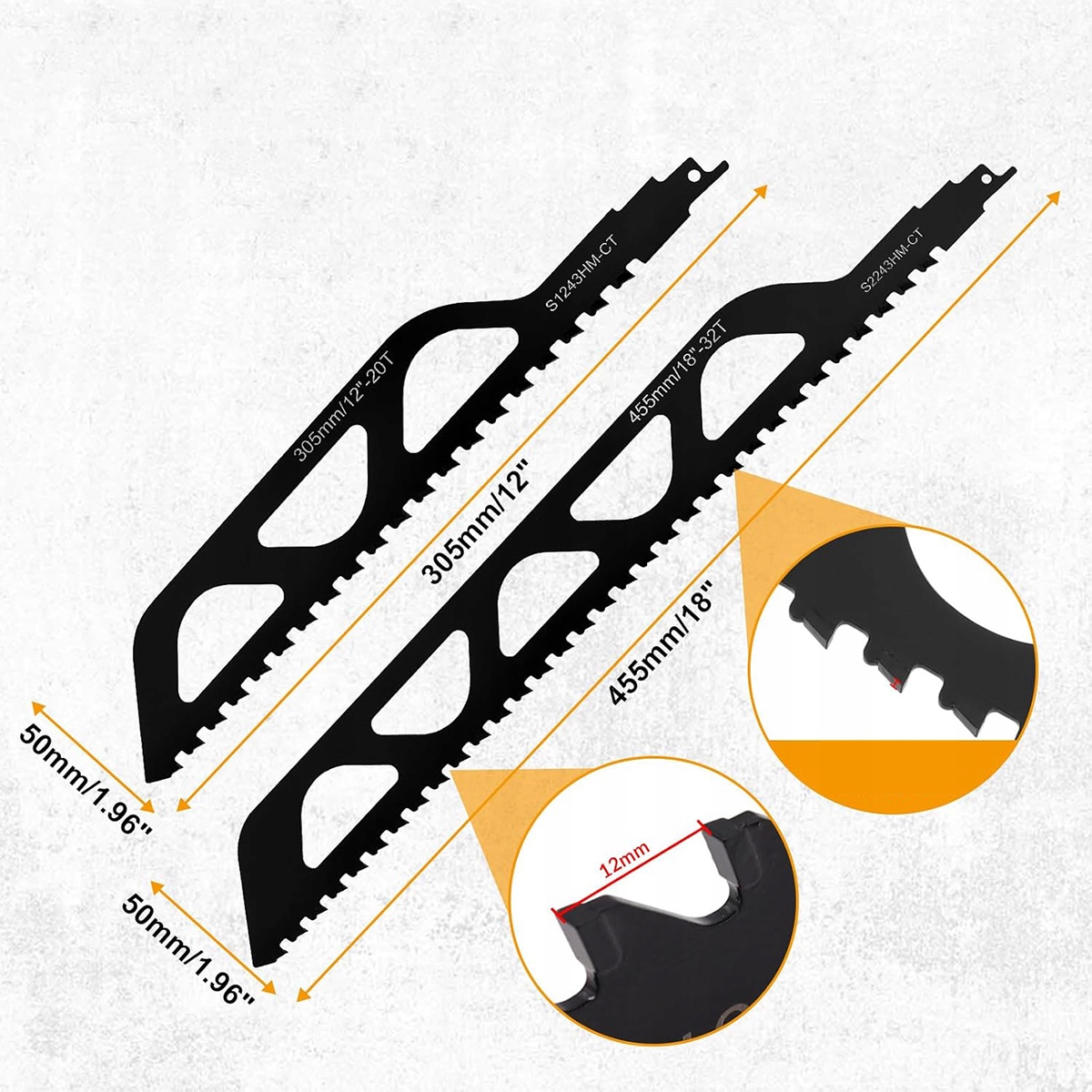 Каменная сабля пилы, карбидные стальные лопасти, лезвия итонг, пила для клеточного бетона, бетон, эйнхелл, dewalt, bosch (455 мм)