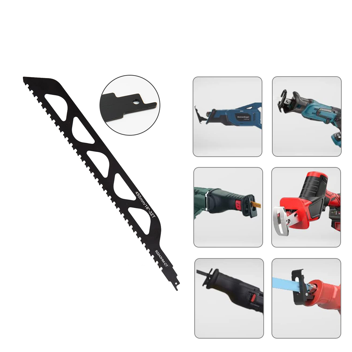 Сабелистская пила для популярных аккумуляторных пил, таких как Scalasty Saw, Tiger Saw Bosch, Metabo, Festool, Milwaukee, Makita, Einhell, Flex, Black & Decker, Hilti, Skil и многие другие.