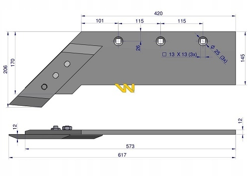 Лезвие сменное левое с долотом PR47, PR48 Unia Плуг бористая сталь WARYŃSKI