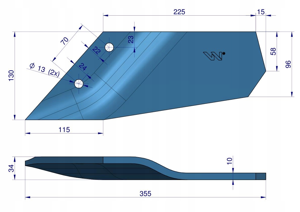 Короткое изогнутое вправо лезвие для использования с Lemken Smaragd Waryński