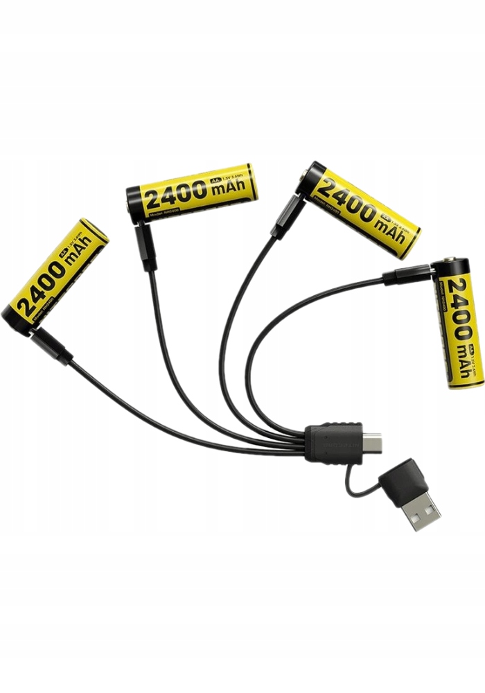 AA NITECORE NH2400 Маленькая батарея объединяет универсальный размер и передовые технологии. Вместимость 2400 мАч и постоянное напряжение 1,5 В делают их идеальными для камер, часов, пилотов, фонариков, вентиляторов, клавиатур и других гаджетов. The built-in USB-C port allows you to charge batteries directly or using a charger. Удобный разделенный адаптер из 4 кабелей USB-C позволяет одновременно заряжать все 4 батареи. Полная зарядка занимает около 3 часов.