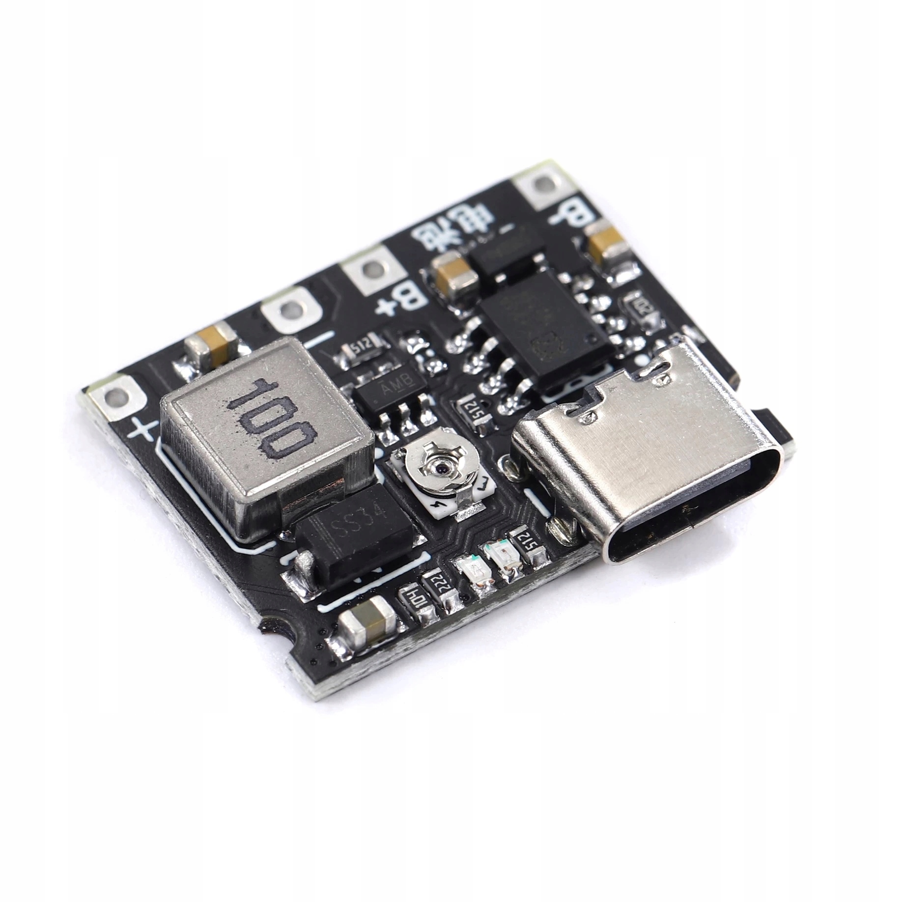 Зарядный модуль Li-Ion 1A с системой TP4056 и преобразователем постоянного тока до 28 В. Вход USB-C