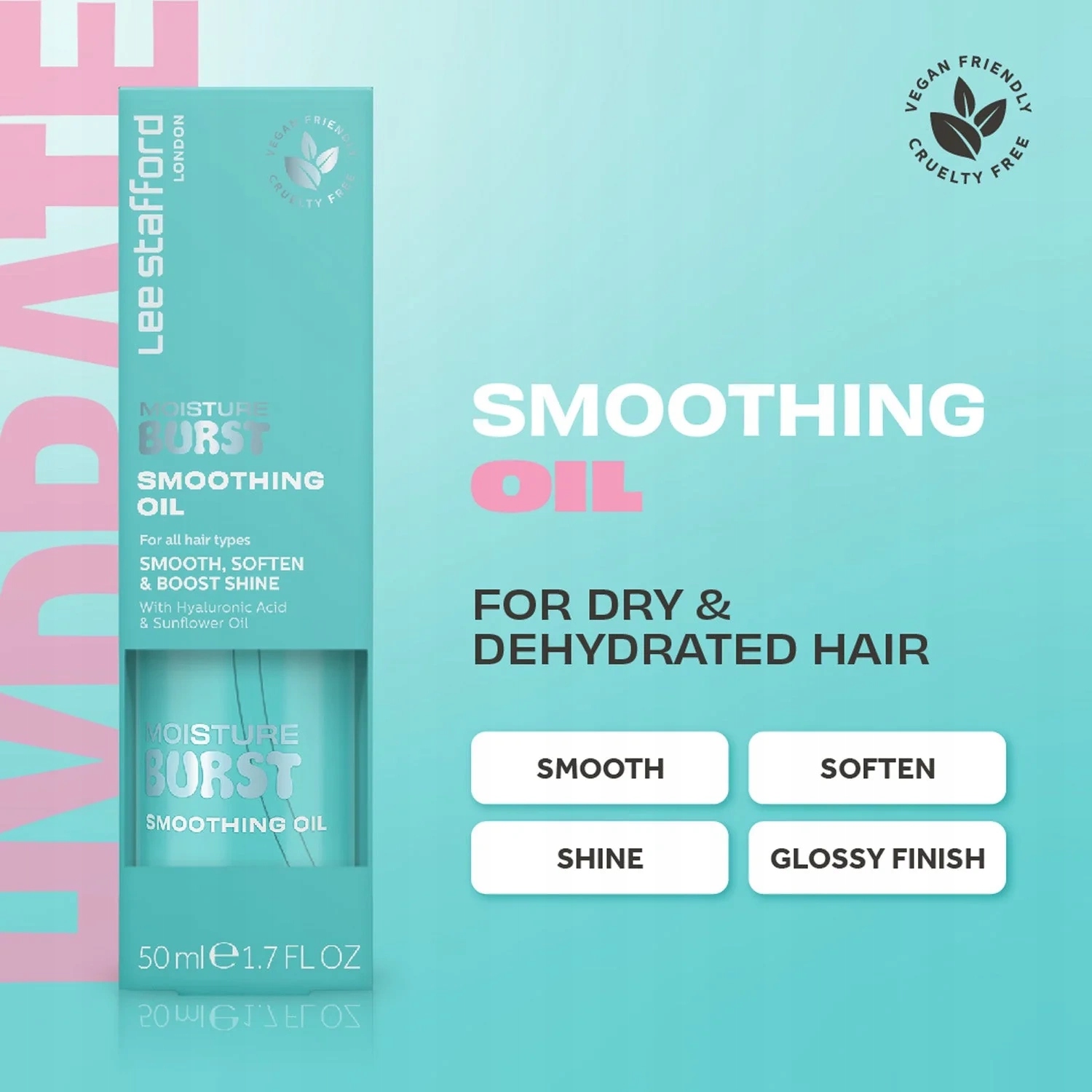 ➡lee Stafford Влажный разрыв сглаживающего масла - это спасение для сухих и обезвоженных волос, обеспечивающих великолепие, гладкость и питание в одном продукте. Это легкое, нерезовое масло идеально подходит для хрупких прядей, без обременения волос. Благодаря ингредиентам, основанным на уходе за кожей, такими как гиалуроновая кислота, он питает волосы, сглаживает и устраняет вьющиеся и непослушные пряди. Идеально подходит как для влажных, так и сухих волос, придавая им шелковистую гладкость и удивительный блеск.