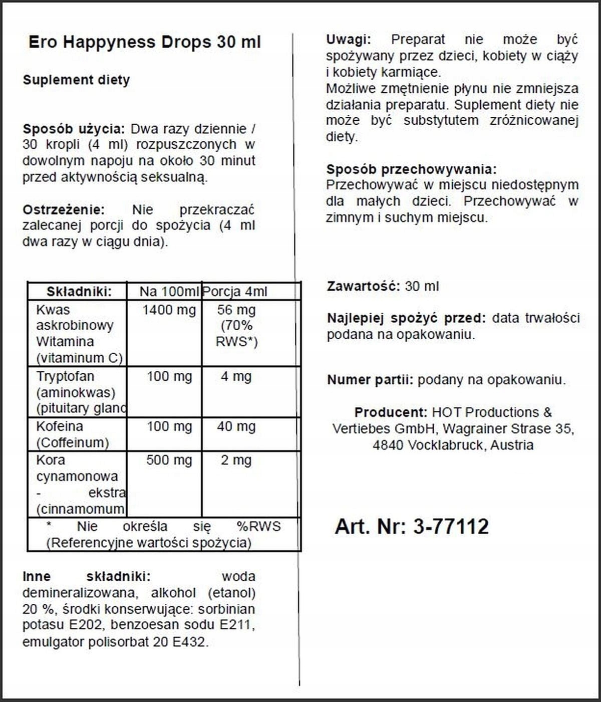 LIBIDO ERO HOT HAPPYNESS DROPS КАПЛИ 30 МЛ