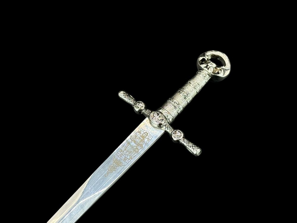 ❇ Часть этого уникального маленького меча была сделана с необычайной точностью и вниманием к деталям. Лезвие из нержавеющей стали украшено с обеих сторон, представляя богатые гравюры, связанные с историей и традициями. Ручка, сделанная из металла, не только красивая, но и удобная на ощупь. Богато украшенная голова и Jelec добавляют величественный вид, что делает его настоящим произведением ремесленного искусства.