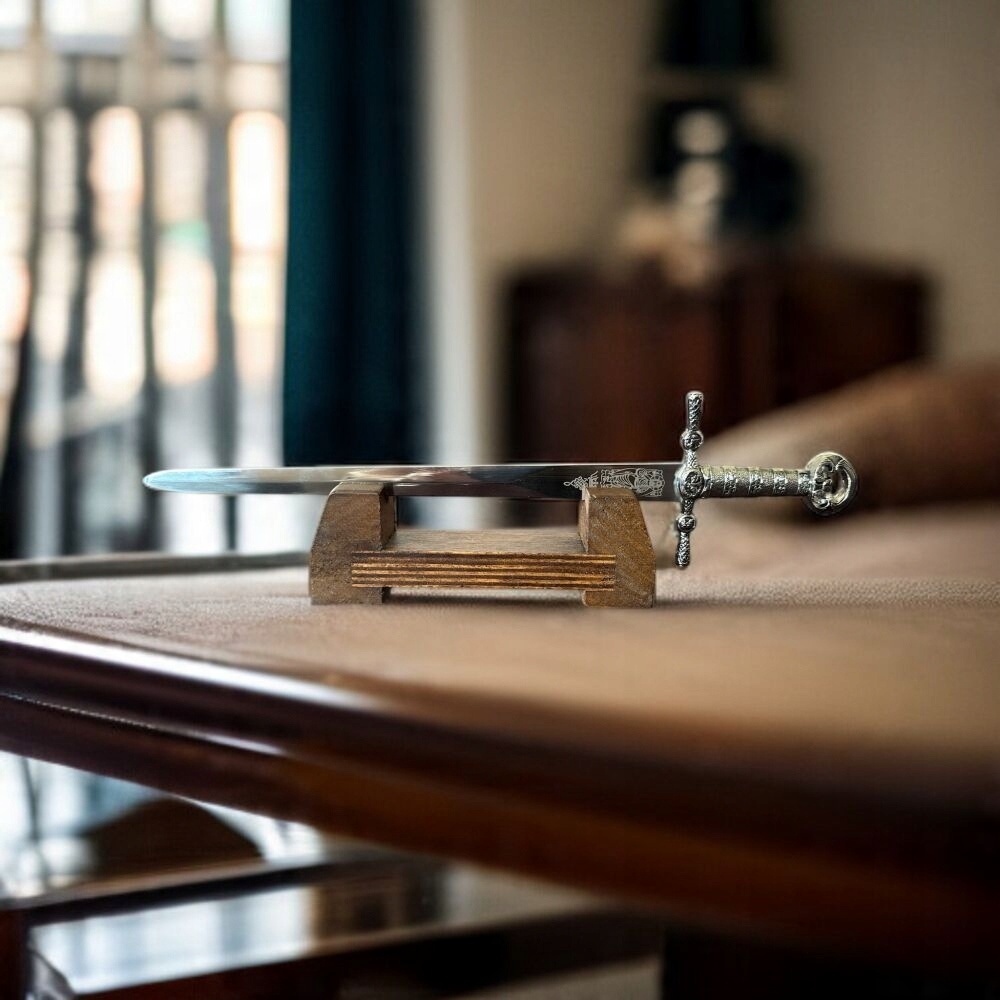 ❇ Наденький нож для вступительных букв - это копия, относящаяся к историческим артефактам. Изготовленный из материалов высочайшего качества, он сочетает в себе элегантность с символикой и удобством для удобства использования. Каждая деталь этого мини -меча была тщательно усовершенствована, чтобы дать дух времен, когда мечи были не только оружием, но и символом, подчеркивающим звание и престиж. Наличие этой копии похоже на то, чтобы прикоснуться к легенде, возможность перемещения последних исторических времен.