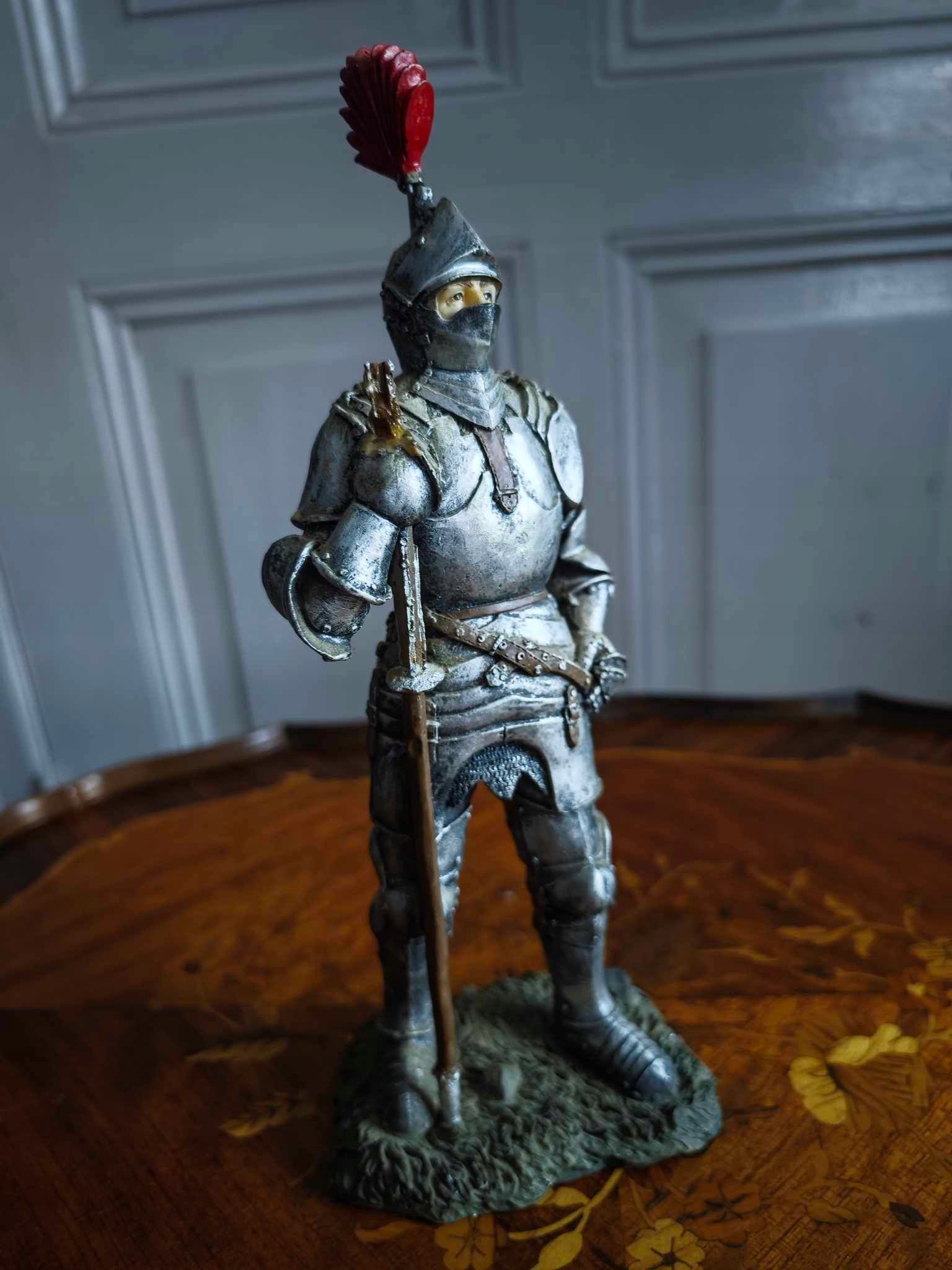 Привет. Я продам рыцарь в броне. Очень красиво и твердо сделано*без верхнего спектра). Броня я не знаю, из чего она сделана (вероятно, некоторая месса), но у нее много деталей. Общая высота составляет 28 см. Не стесняйтесь делать заявку