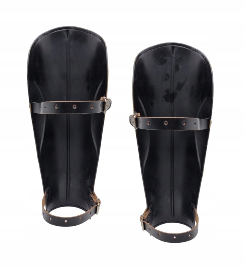 ✔️ Для крепления каждой щитки используются два кожаных ремня.