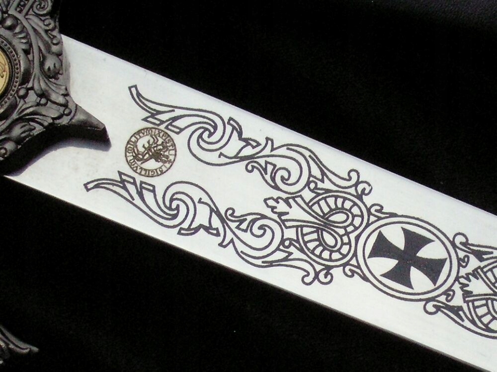 Лезвие: нержавеющая сталь 440, декорировано с обеих сторон. Дополнительно на одной стороне рукояти имеется гравировка в виде печати тамплиеров с надписью: SIGILLUM MILITUM CHRISTI