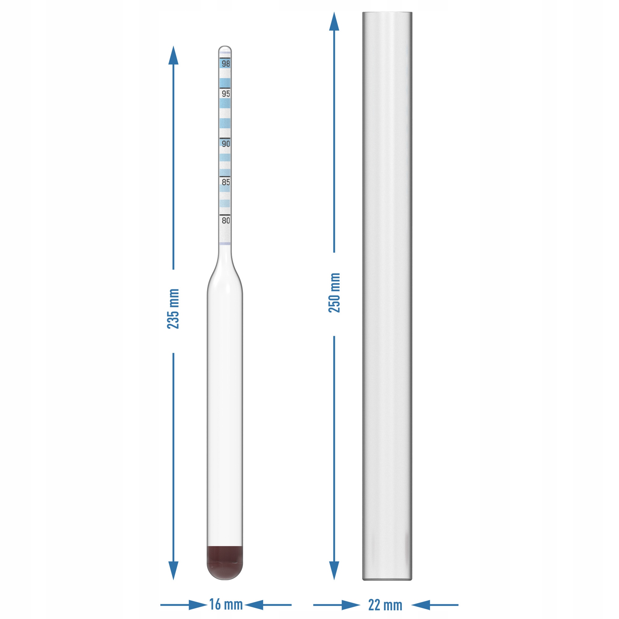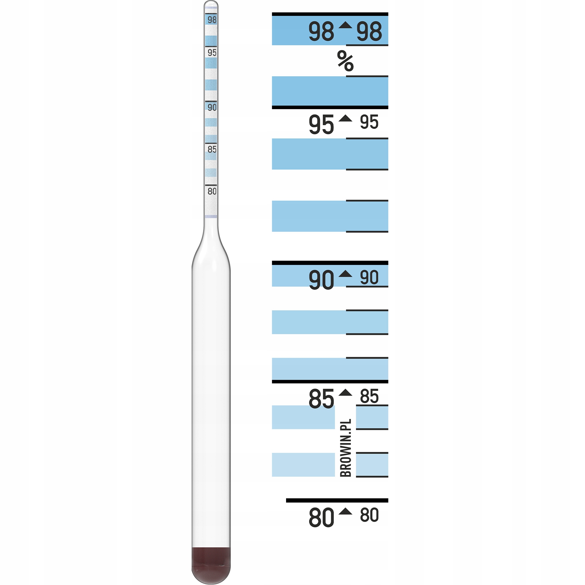 Измеритель алкоголя с не -спаривающимся тестом -это ареометр, которая позволяет мне измерять содержание алкоголя в бесцветных водках, не -сугар. Необходимая температура во время измерения составляет 20 ° C - измерение, безусловно, будет надежным и точным.
