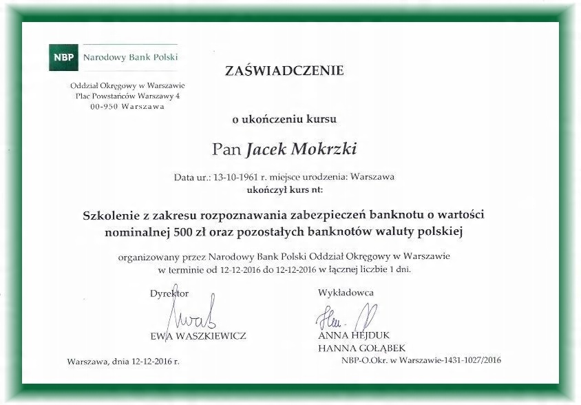 Наши сотрудники обучены профессионалами Национального Банк Польши.