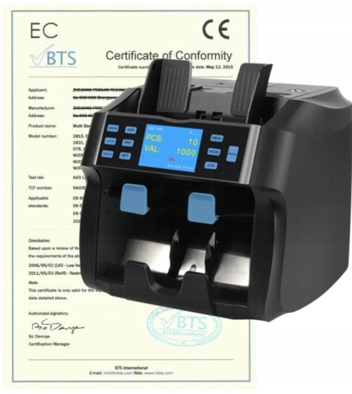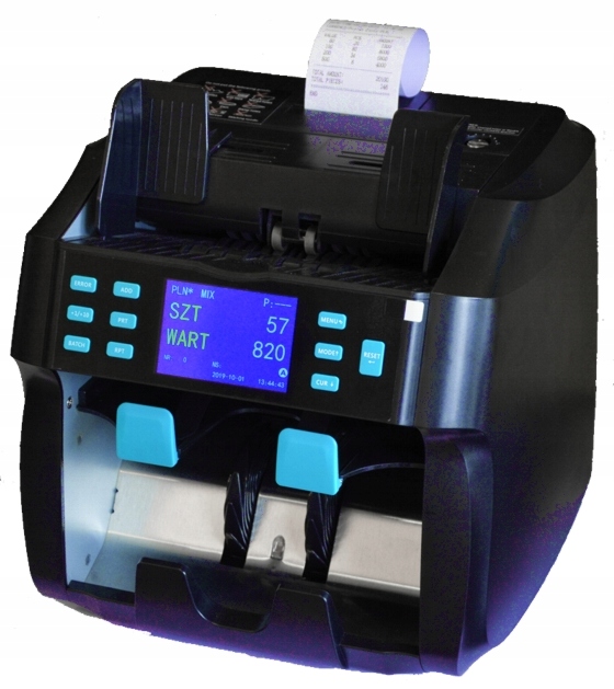 - Встроенный принтер после нажатия клавиши ПЕЧАТЬ распечатает отчет о последнем подсчете с разделением на номиналы, количество и стоимость каждого и сумму.