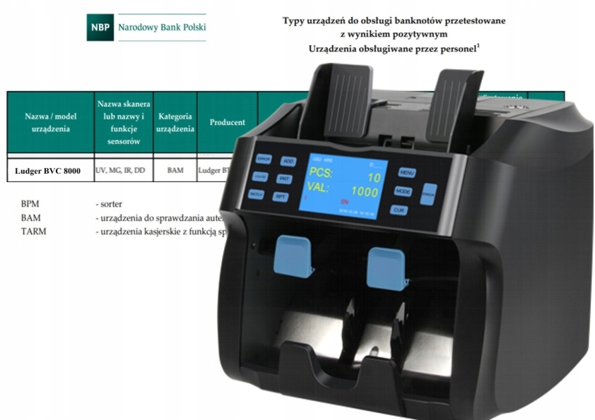 Наши сотрудники проходят обучение у специалистов Национального банка Польши в области распознавания подделок и мер безопасности, используемых на банкнотах. Имеем соответствующие сертификаты, выданные Национальным банком Польши.