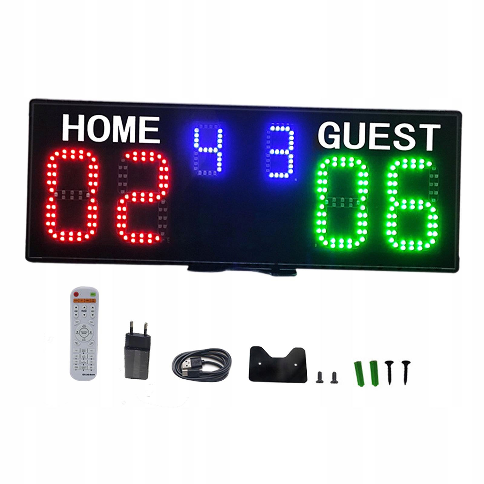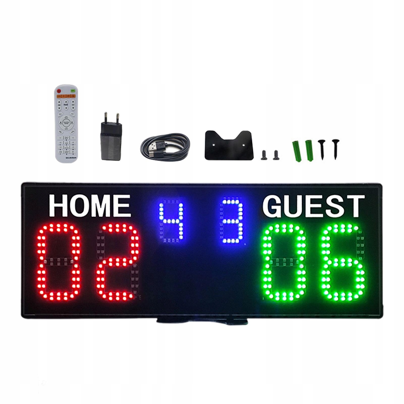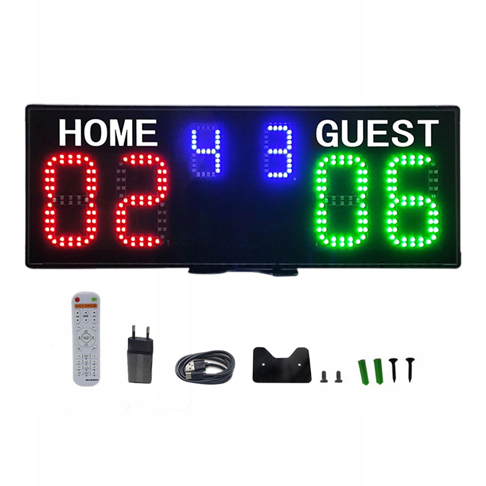 [Универсальная электронная таблица результатов]: Эта доска результатов предназначена для отображения результатов домашних и гостевых команд, а также раундов матчей. Подходит для различных спортивных мероприятий и может служить до 99 очков и 9 раундов, что делает его отличным выбором для ежедневных тренировок или конкурентных игр.