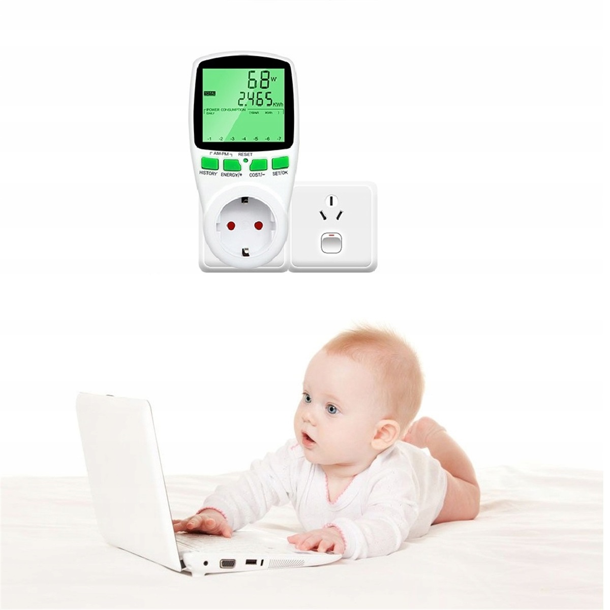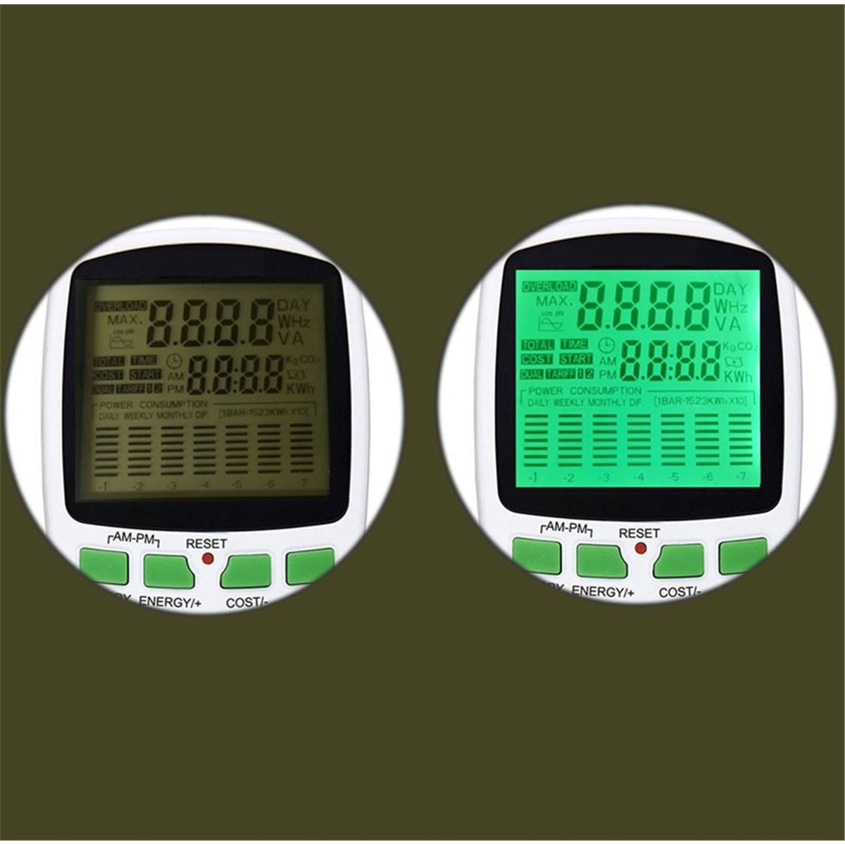 ✅ Функция подсветки отображения: оснащен светодиодным дисплеем, четко отображает данные, такие как напряжение, мощность, мощность и энергопотребление, что позволяет пользователям контролировать потребление энергии реального времени.