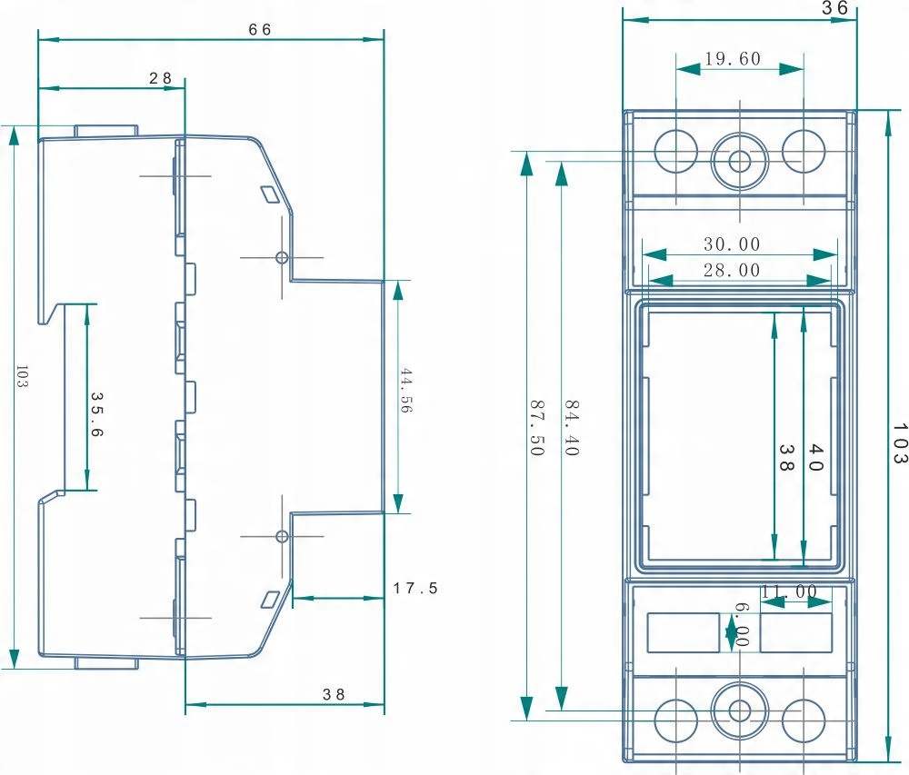 - Принципы работы: Напряжение и ток берутся из соответствующих цепей и преобразуются в сигнал, который подается на интегральную схему. Счетчик имеет импульсный выход для тестирования, длительность импульса 80+20 мс.